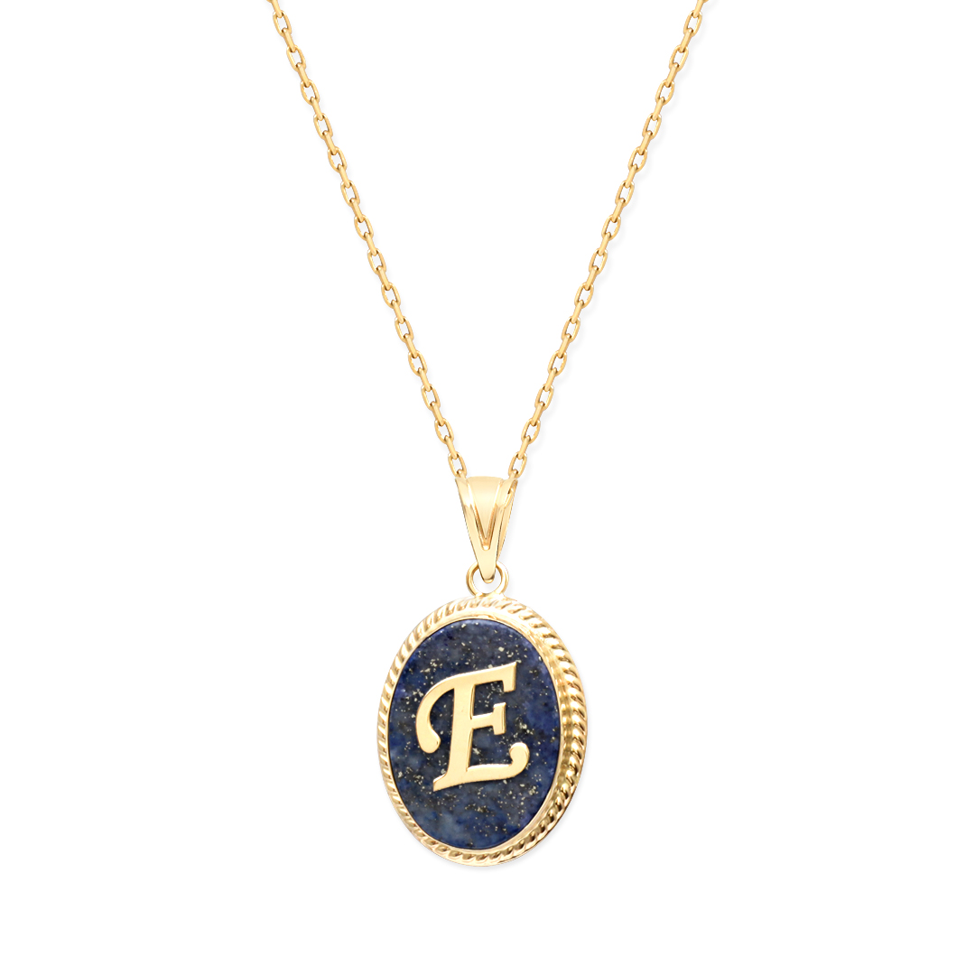 Lapis, lazunili diğer adı lacivert taşı üzerinde harfli trend sezon modası E harfi kolyeyi günlük olarak takabilirsiniz. Lapis taşı bir çeşit bakır cevheridir, kristal yapısı birbirine dik ama farklı uzunlukta eksenlere sahiptir. İçerisinde gece gökyüzüne dağılmış yıldızlar gibi altın rengi prit parçaları bulunur, evrenin gücünü ve enerjisini alıp beynimize yönlendirir.