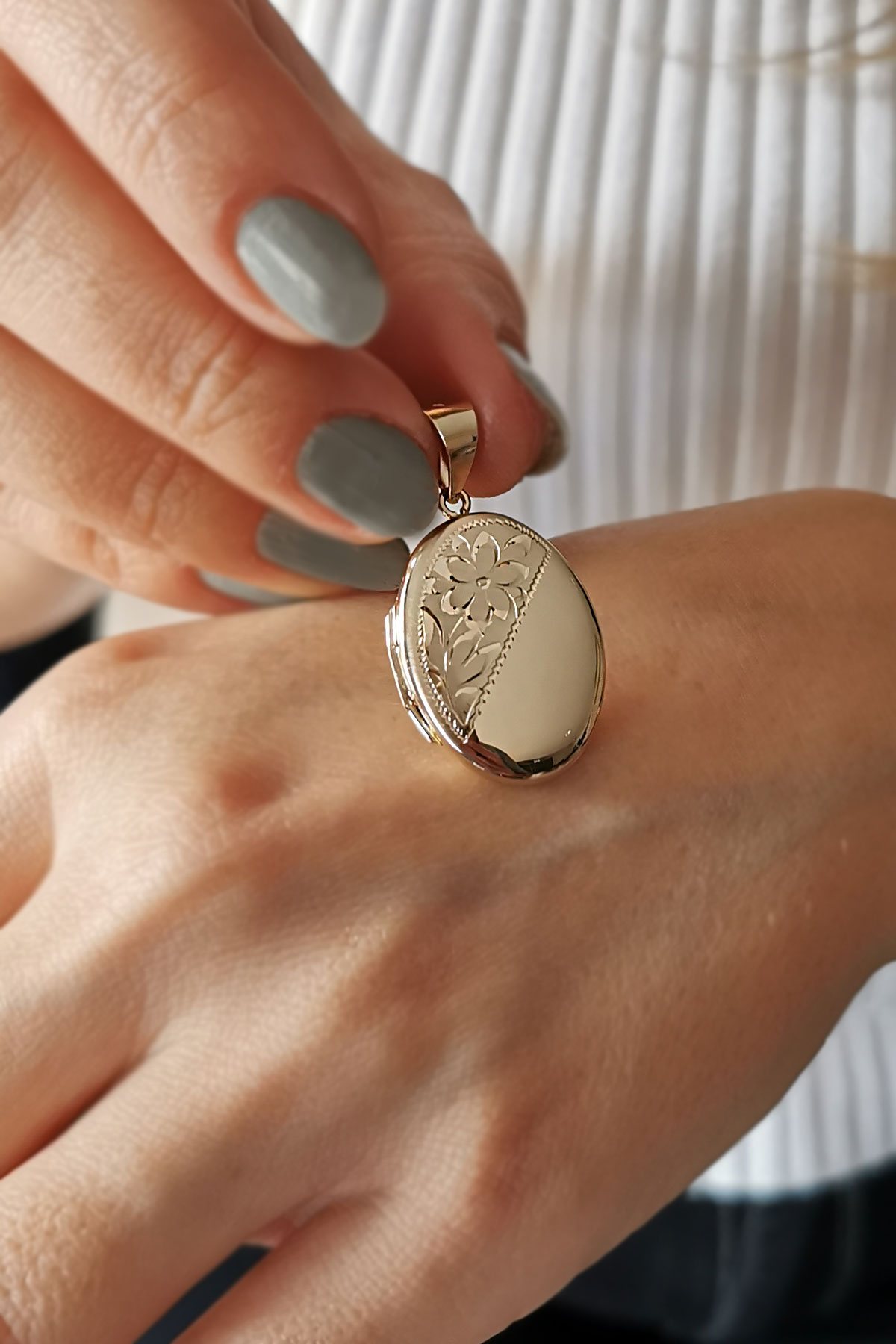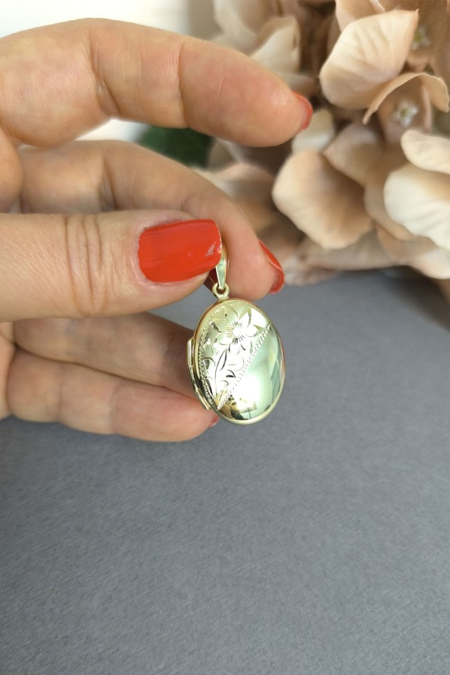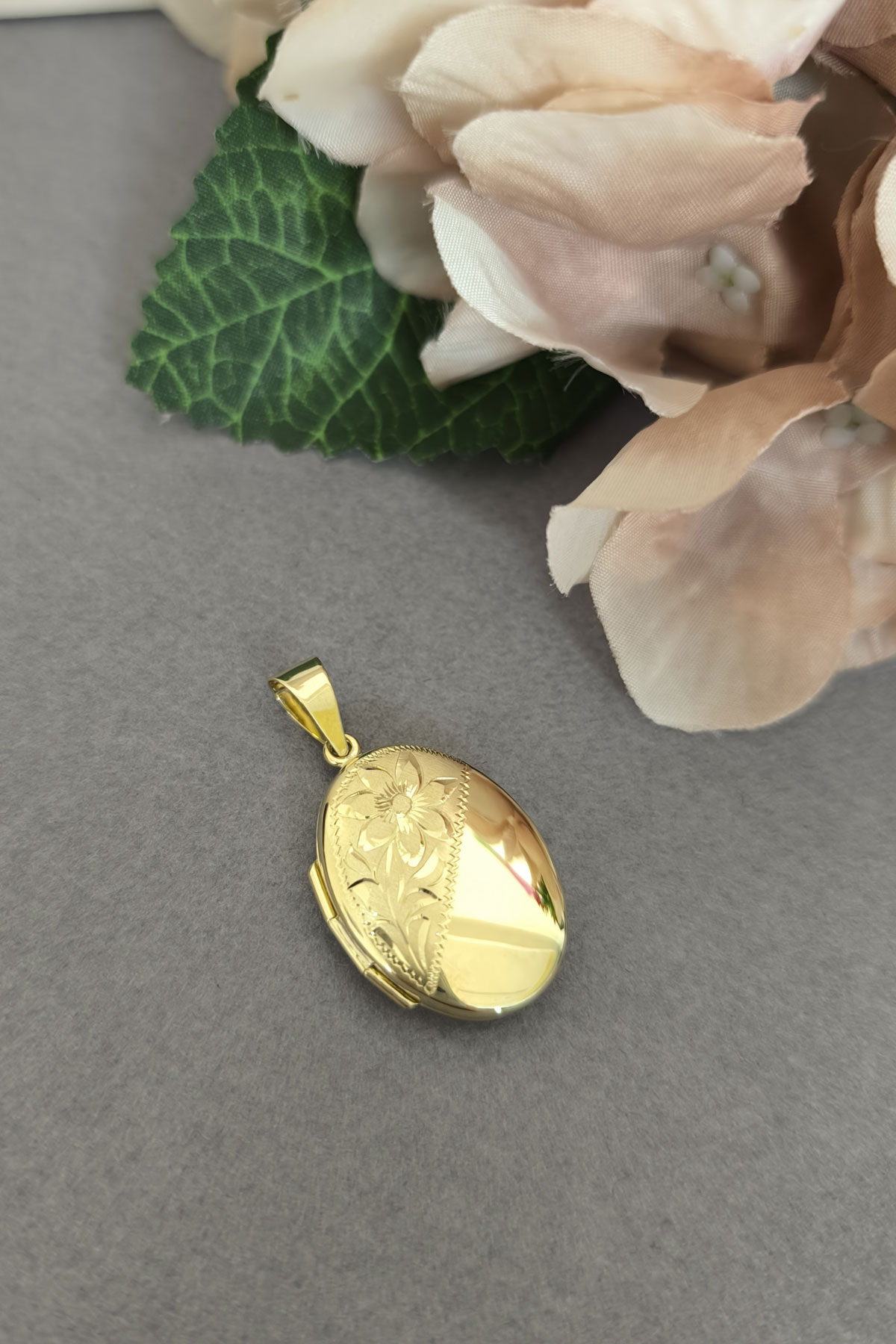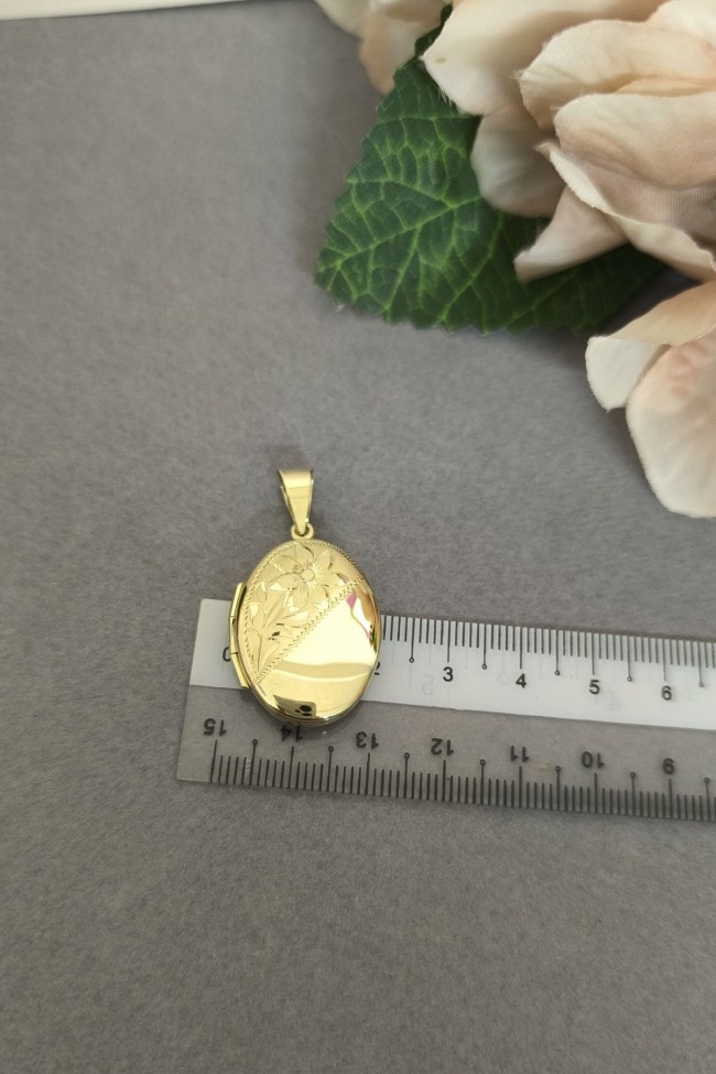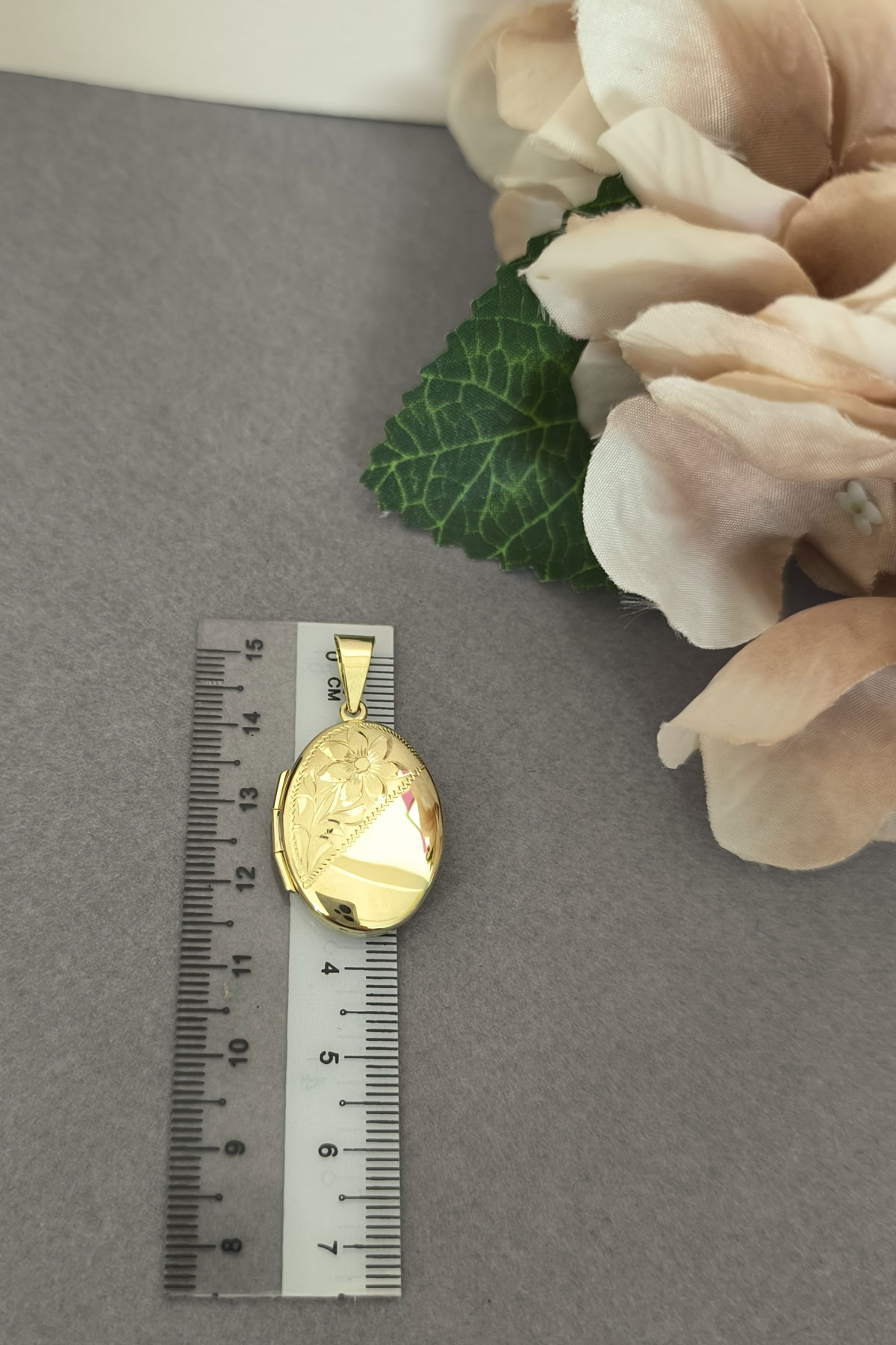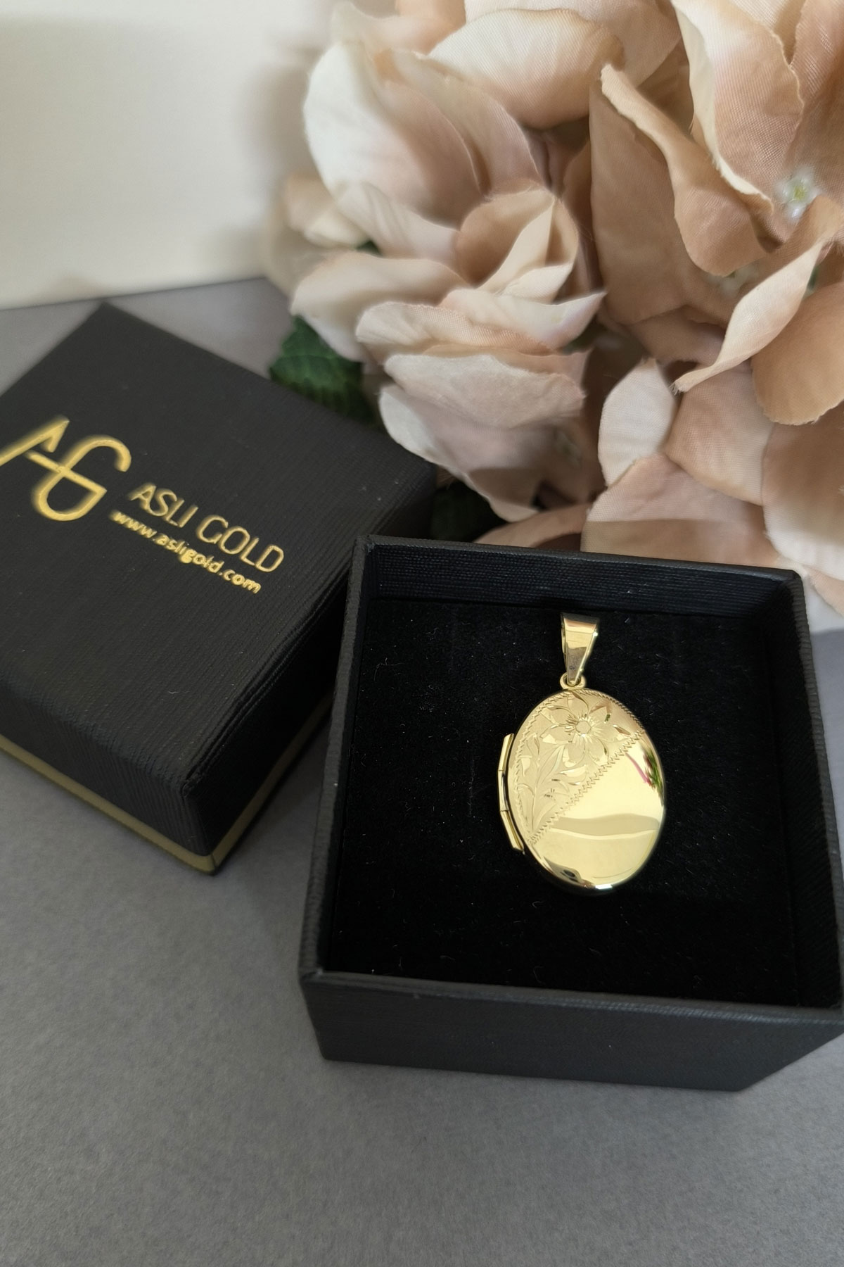 14 Ayar altın 5.40 gram ağırlığında şık ve gündelik kullanıma uygun 3.8 cm iadeal boy oval özel kalemkar ustaların ellerinden çiiçek motifli el kalemi işlemeli madalyon kolye ucu.