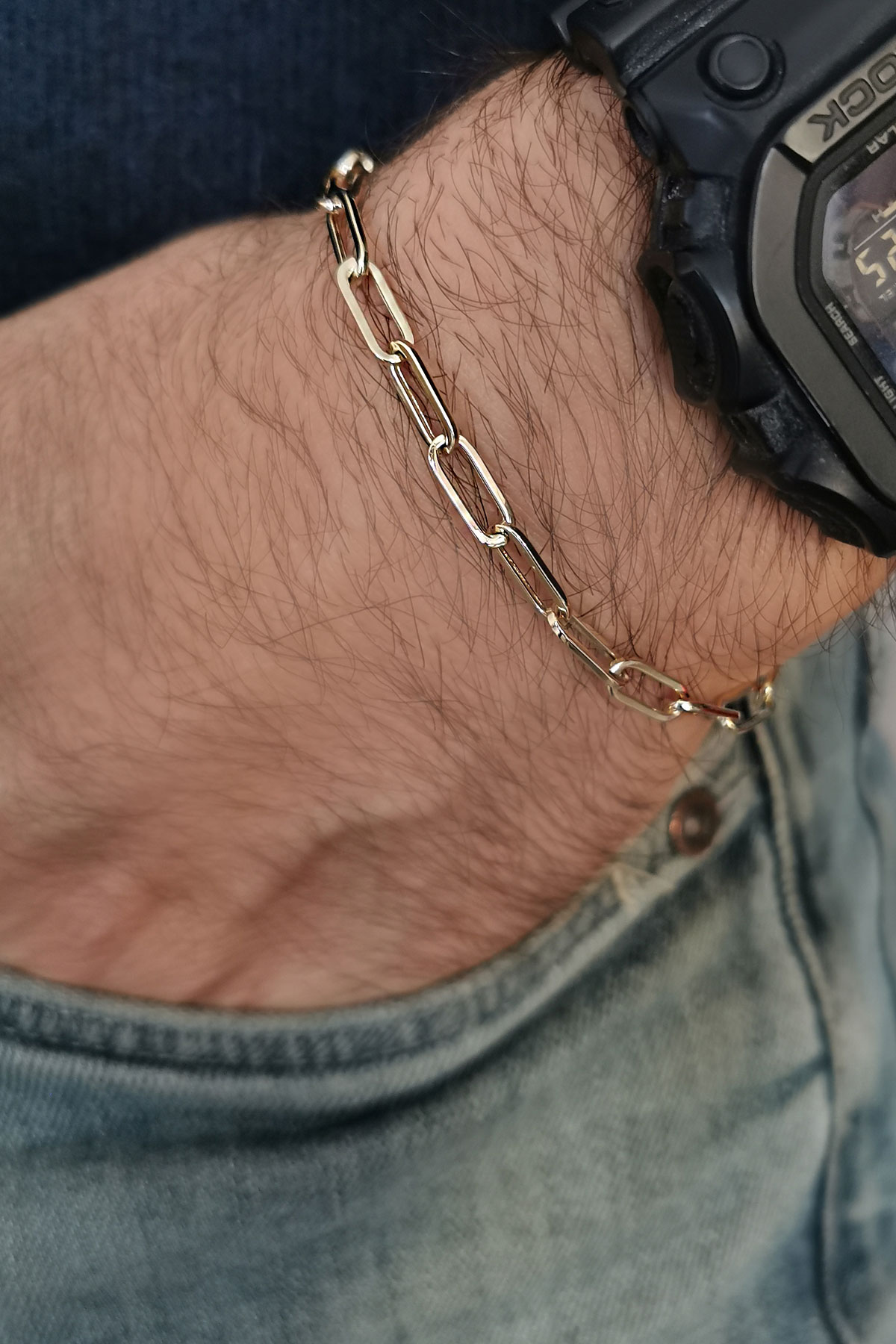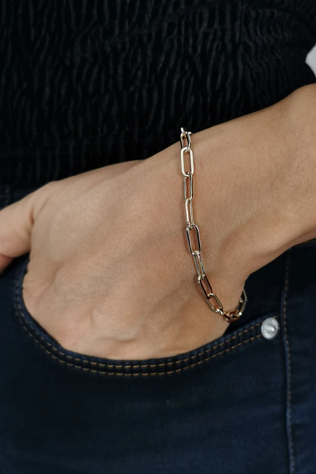 Ataç Zincir Detaylı 19.5 Cm Boyunda Işıl Işıl 2.85 Gr. Ağırlığında 14 Ayar Altın Spor Unisex Bileklik.