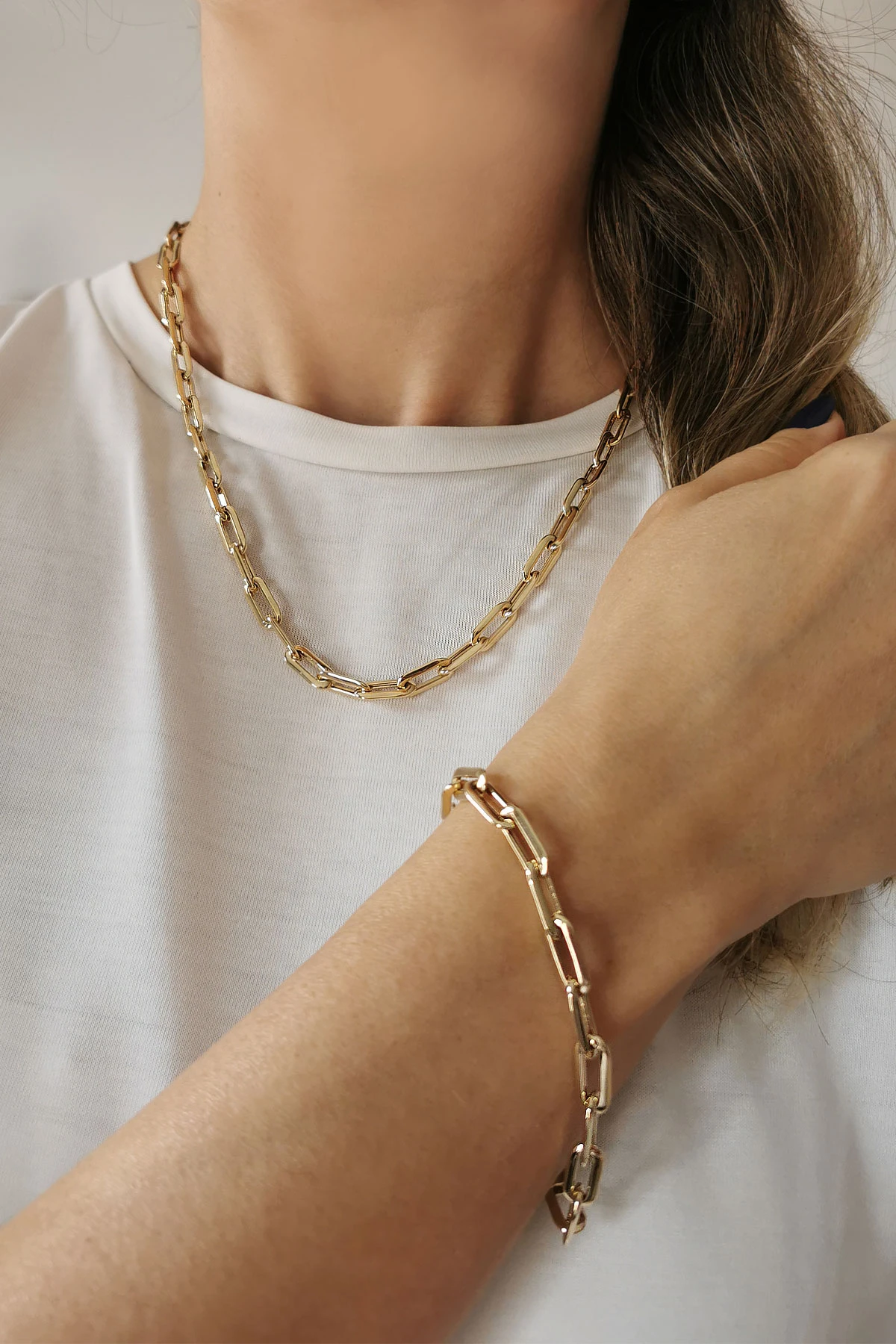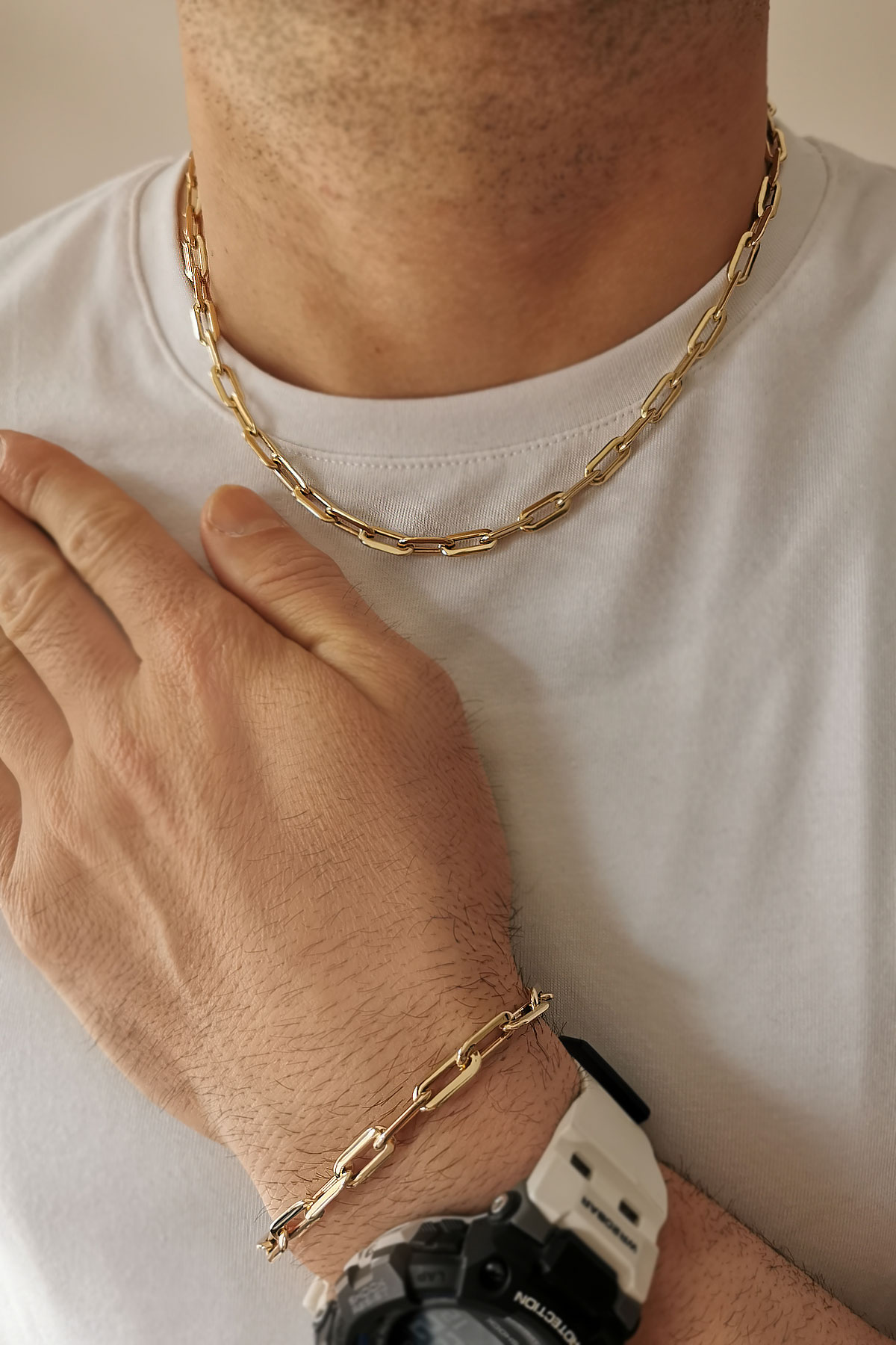 14 Ayar Altın Spor Tasarım Ezme Model Tüm Gün Giyim Kombinlerinize Eşlik Edecek Ve Tarz Katacak 18.60 Gr Altın Unisex Kullanıma Uygun Kolye Bileklik Takım.