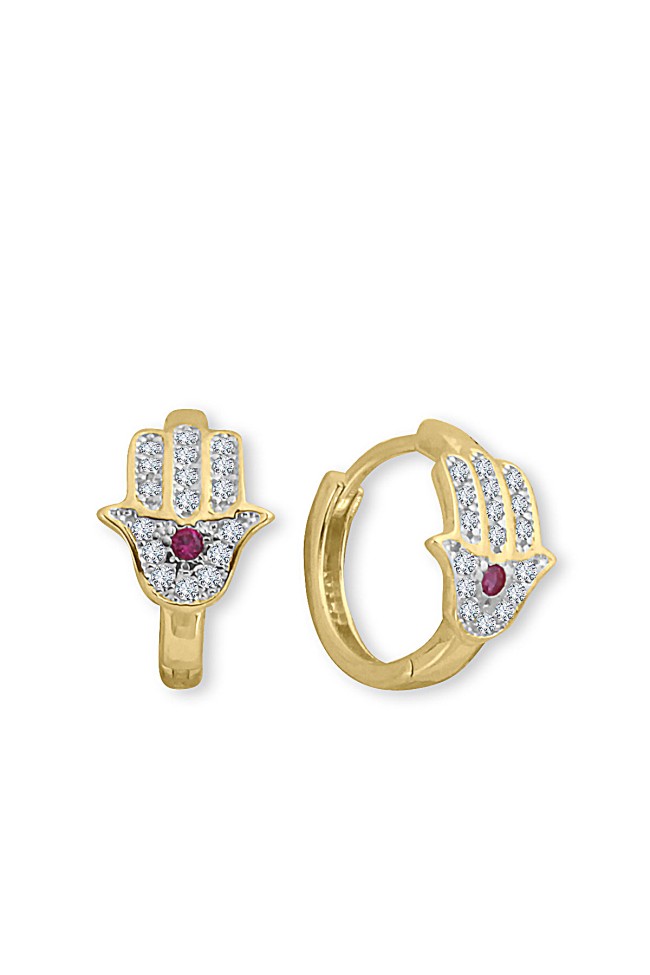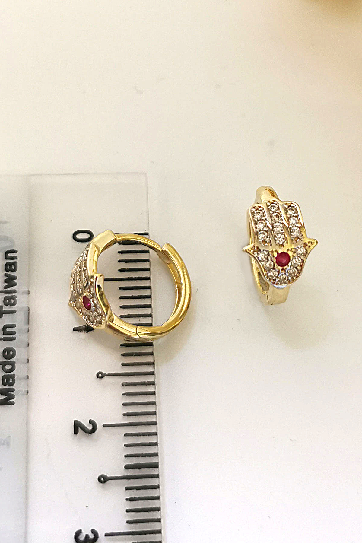 1.2 Cm boyunda bereket sembolü fatma ana eli model günlük olarak kullanıma uygun 14 ayar 1.75 gr ağırlığında altın çocuk küpesi.