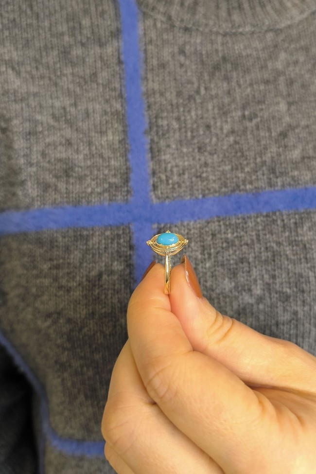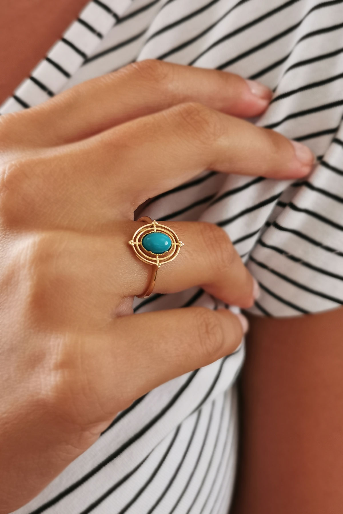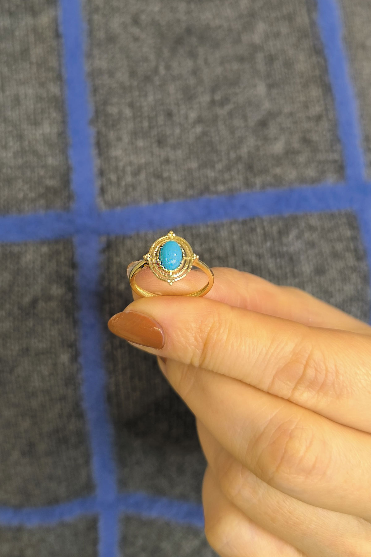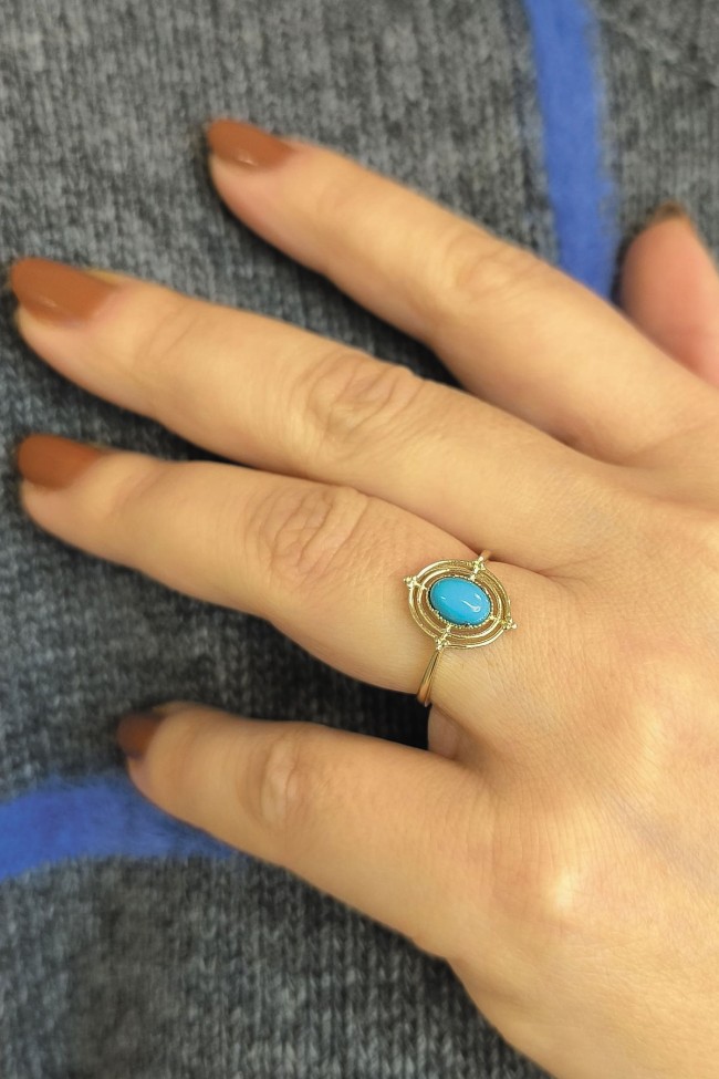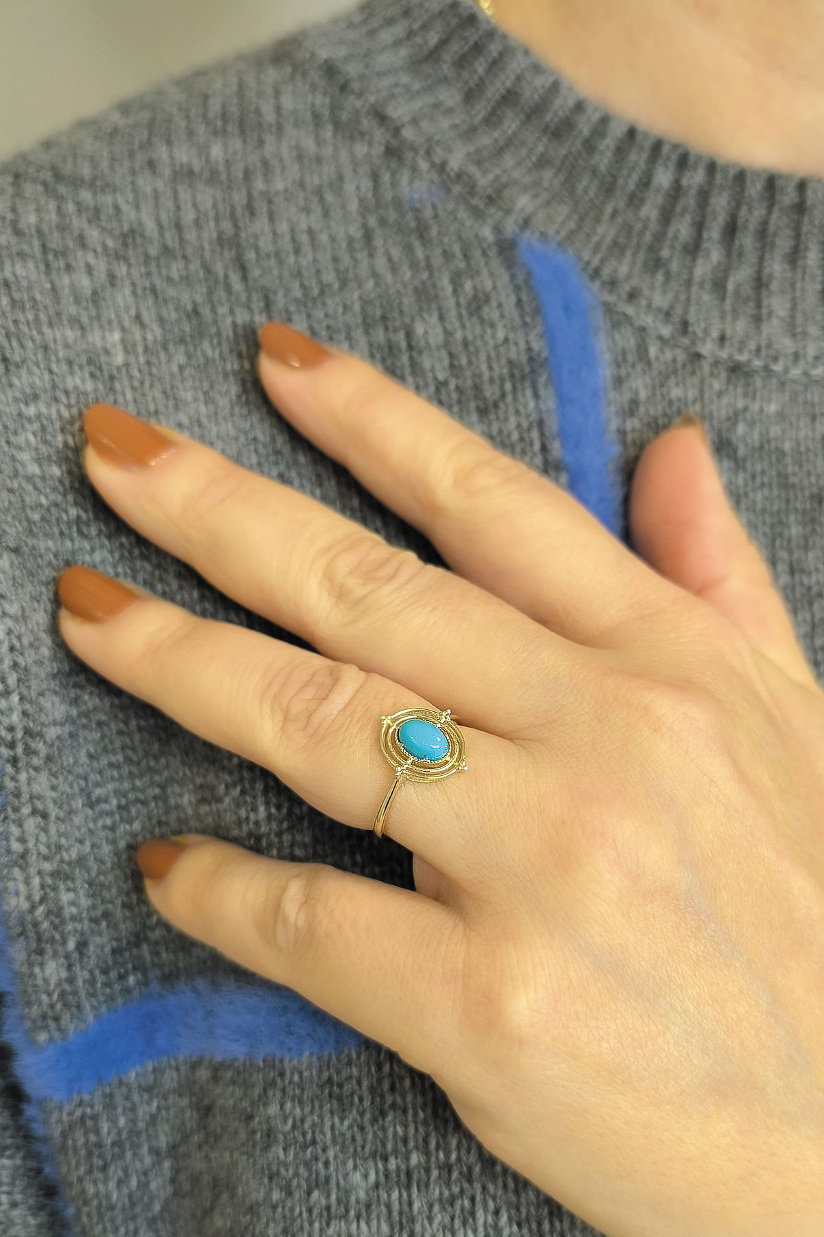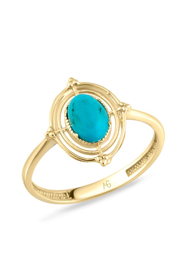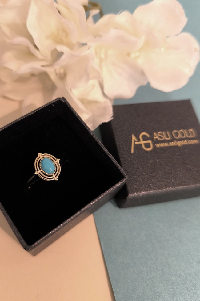 1.60 Gram Ağırlığında Firuze Taş Detayı İle Oldukça Hoş Bir Havaya Sahip, Farklı Spor Tarzı Olan Günlük Kullanıma Uygun 14 Ayar Altın Kadın Spor Yüzük.