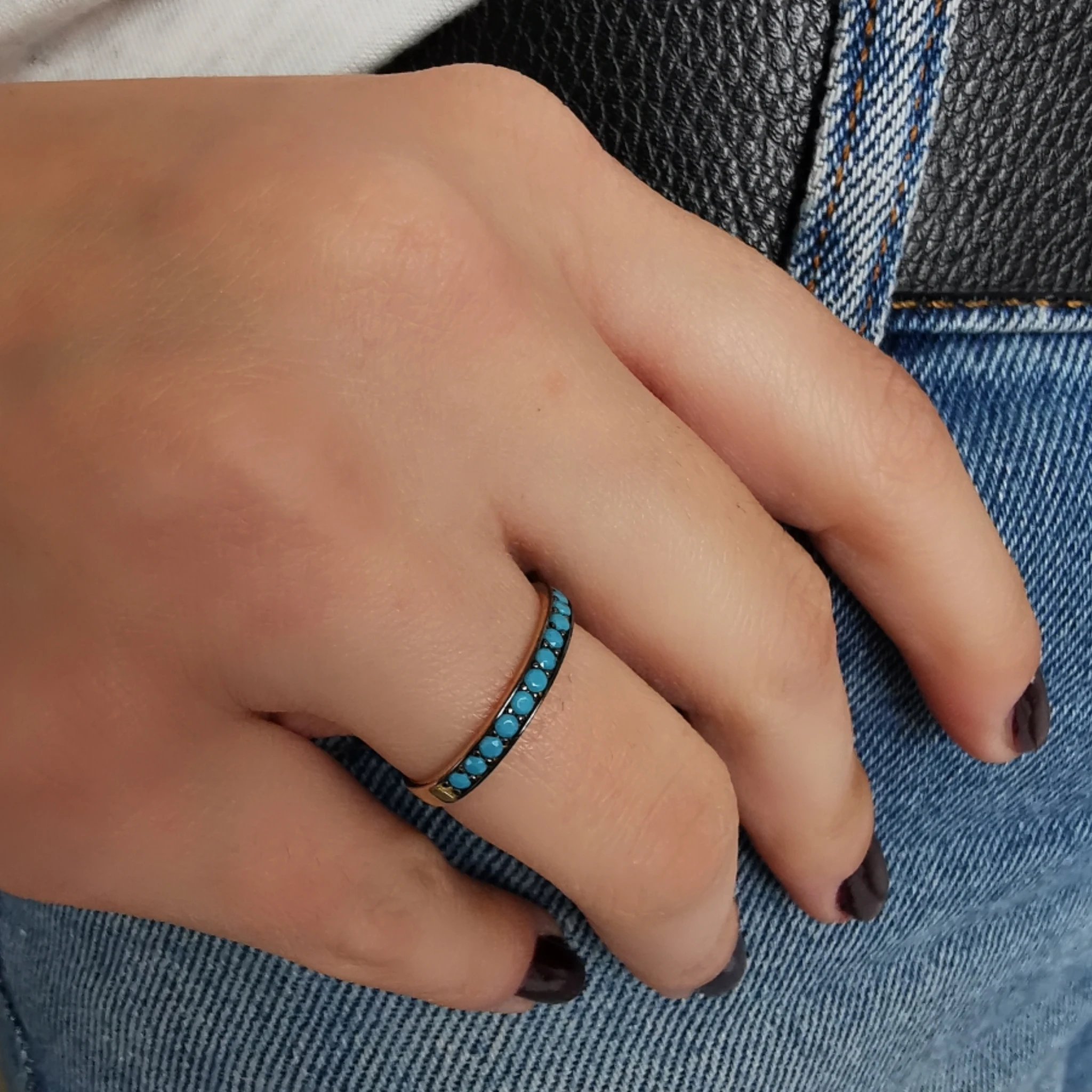 14 Ayar 1.40 gram ağırlığında oldukça spor ve modern tasarımıyla tüm gün parmağınızdan çıkarmak istemeyeceğiniz firuze taşlı altın yüzük.