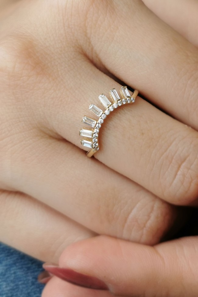 14 ayar sarı altın baget taşlı tasarımıyla günlük kullanıma uygun parmağınızda stilinize hava katacak 1.55 gram ağırlığında Francesca yüzük.