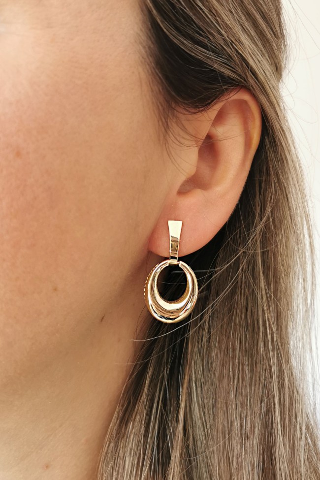 14 Ayar füzyon modern ve sade tasarımı ile şık duruşa da sahip günlük kullanıma uygun 5.10 gram ağırlığında altın oval bombeli küpe.