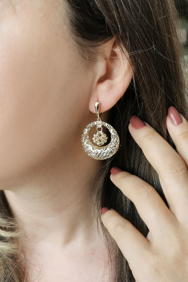 8.25 Gram Ağırlığında 4 Cm Boyunda Özel Tasarım 14 Ayar Fizyon Döküm Tekniği İle Üretilen Oldukça Göz Alıcı Modern ve Şık Bir Havaya Sahip Taşsız İtalyan Küpe.