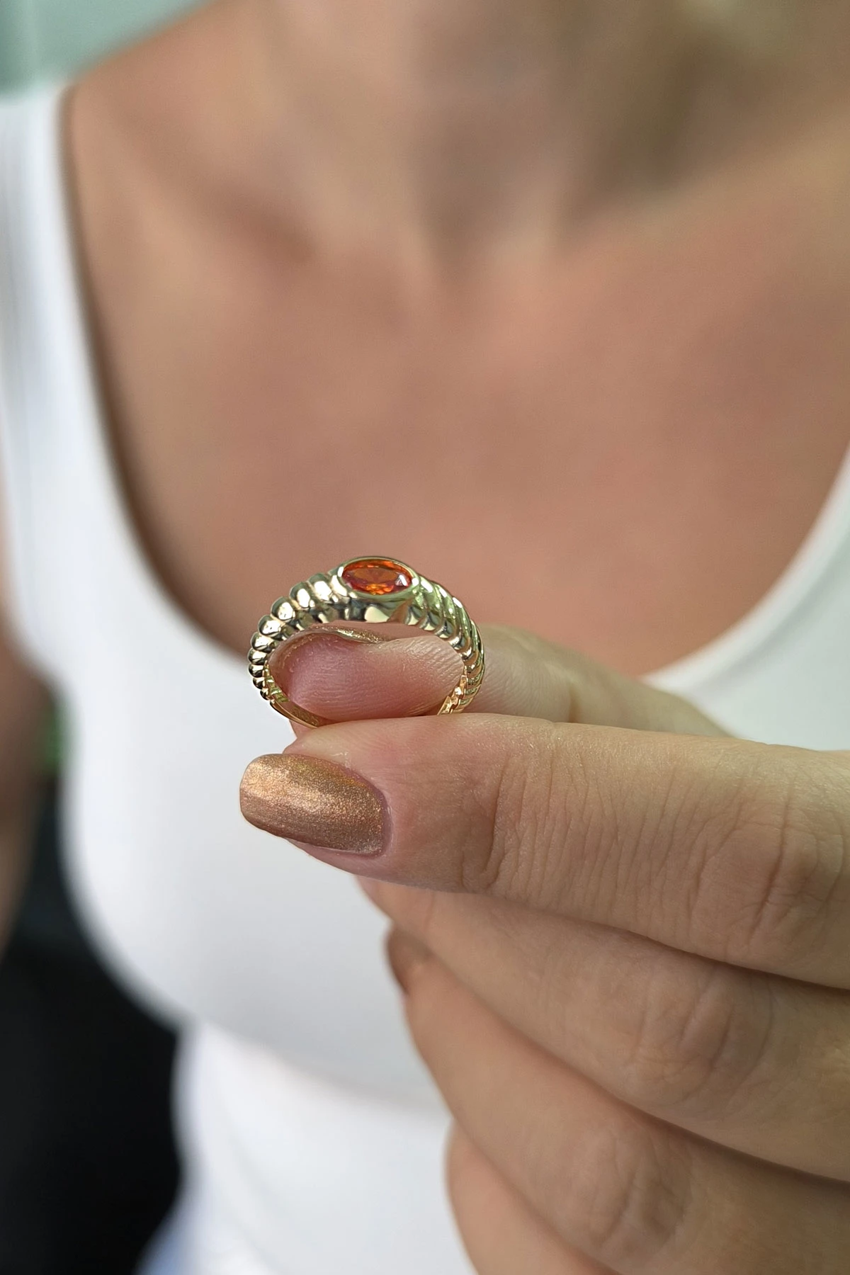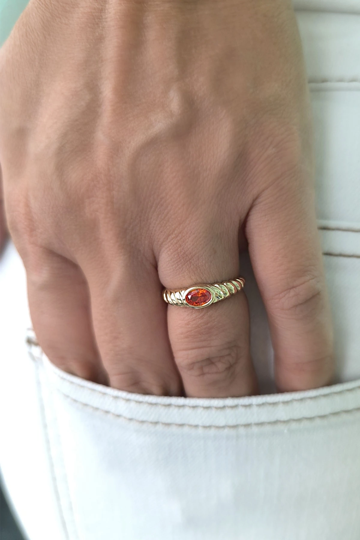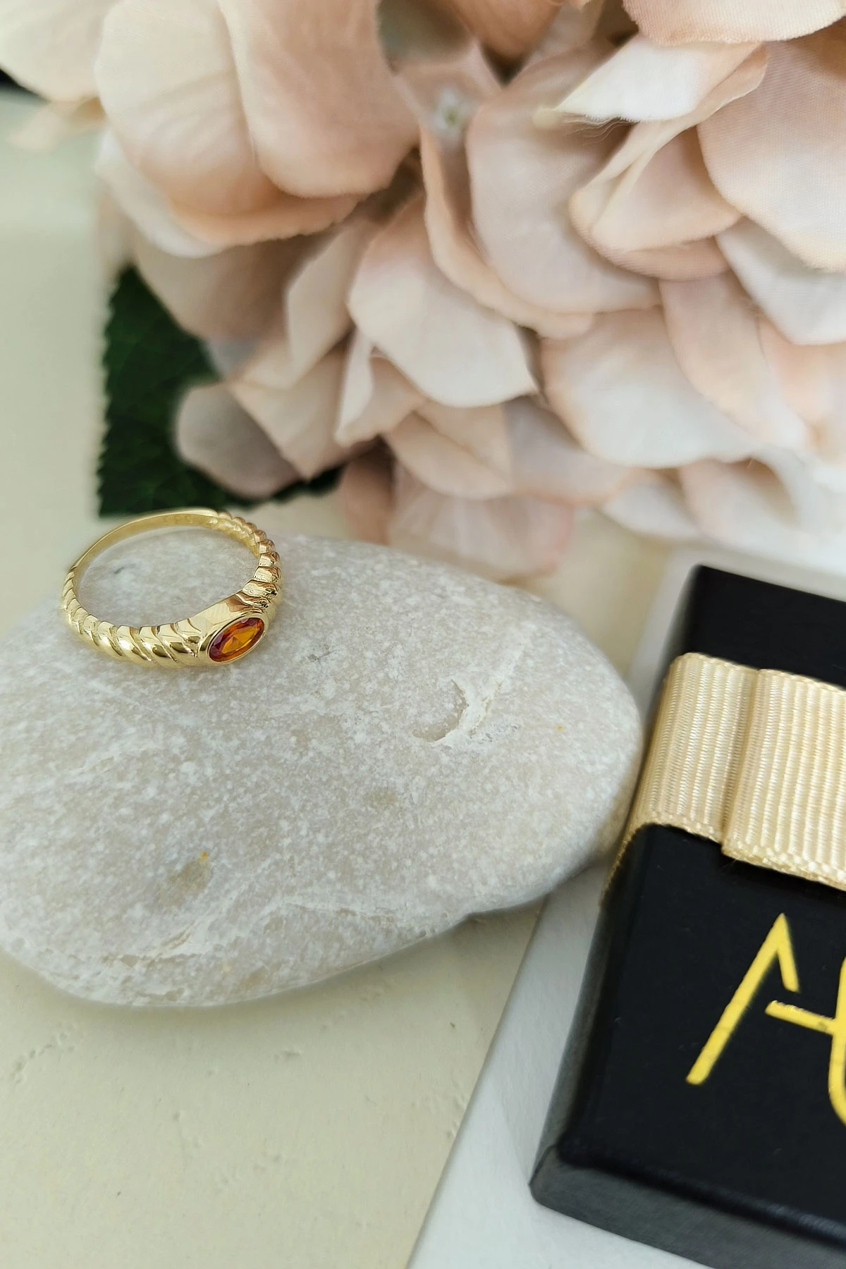 Bombe model oval garnet taşlı 14 ayar sarı altın tasarımıyla günlük kullanıma uygun 2.30 gram ağırlığında modern ve tarz kadın yüzük.