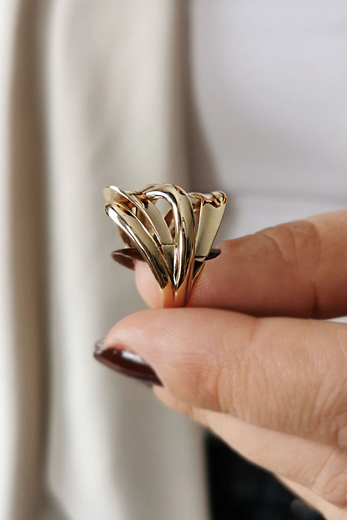 14 Ayar fantazi ve modern tasarım günlük kullanıma uygun taşsız model 5.20 gram ağırlığında altın bant kadın yüzük.