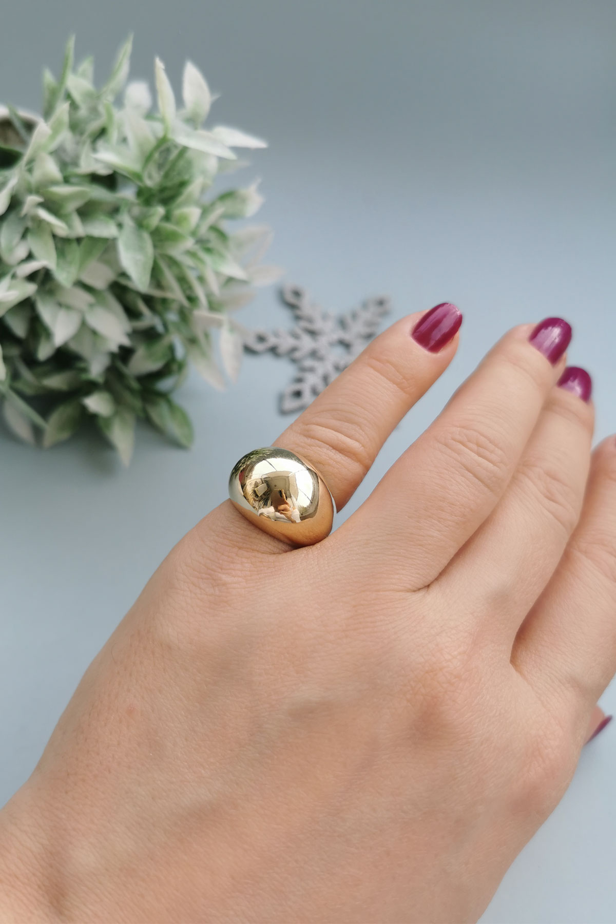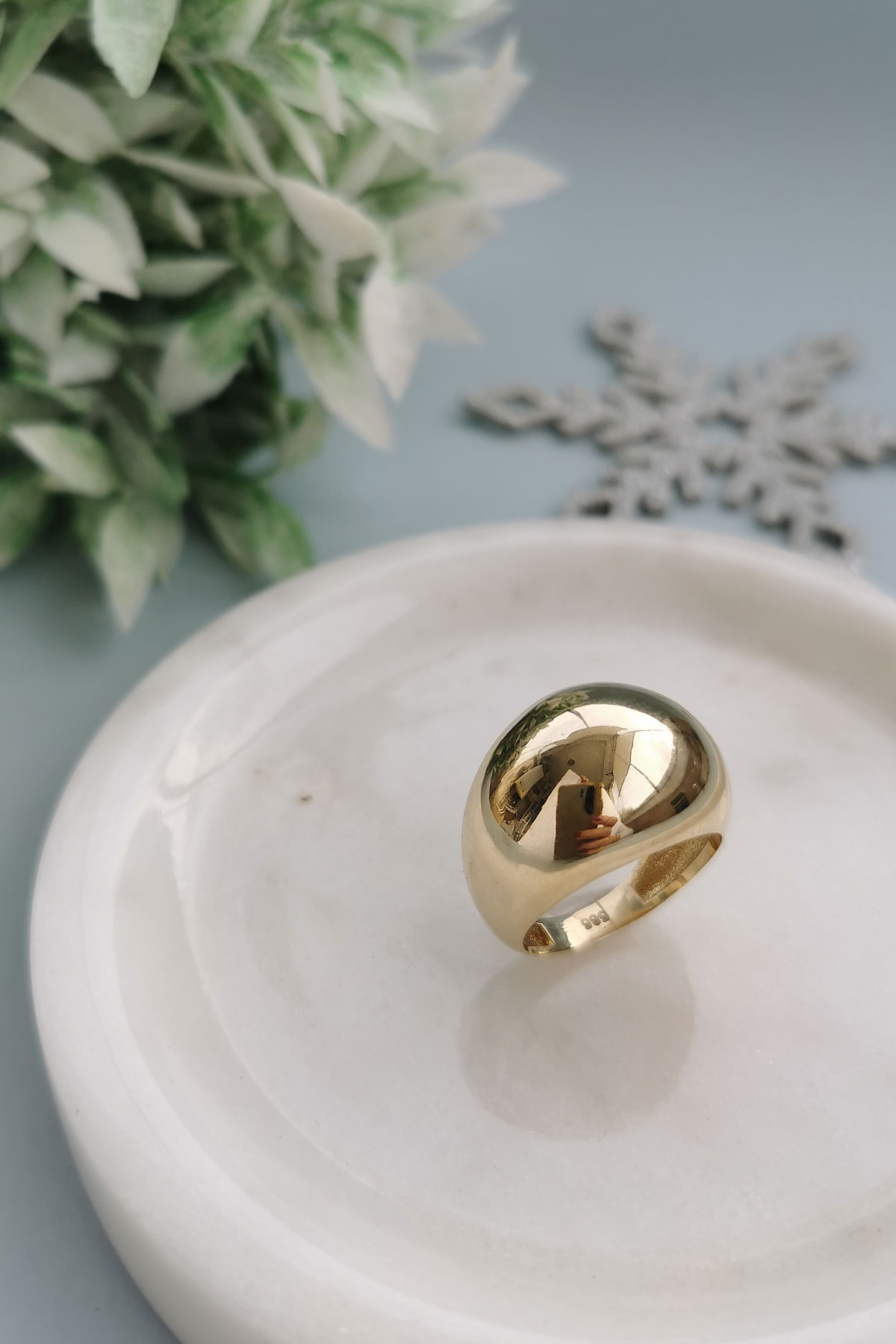 2.60 Gram Ağırlığında Taşsız Geniş Bombeli Oldukça Hoş Bir Havaya Sahip, Gösterişli Ve Günlük Kullanıma Uygun 14 Ayar Altın Yüzük.