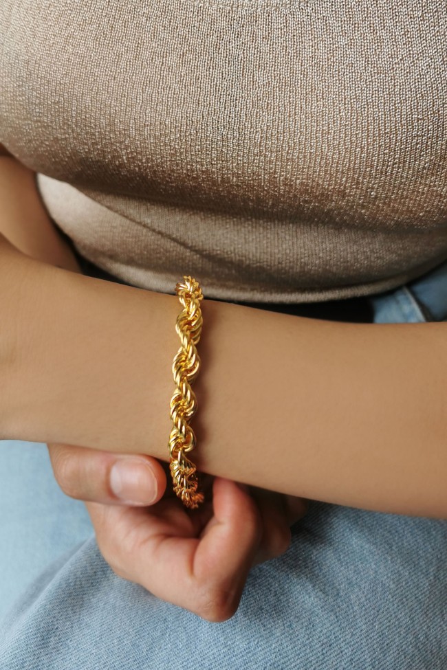Göz Alıcı Tasarımı İle 21 Cm Boyunda Işıl Işıl 9.45 Gr. Ağırlığında 14 Ayar Altın Klasik Geniş Ve Gösterişli Halat Bileklik.