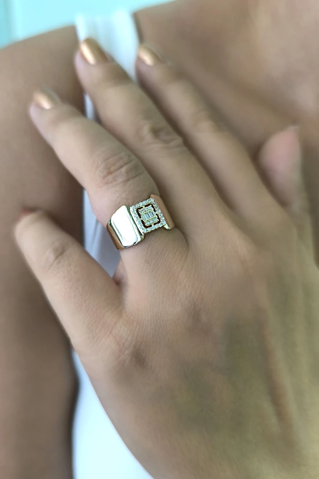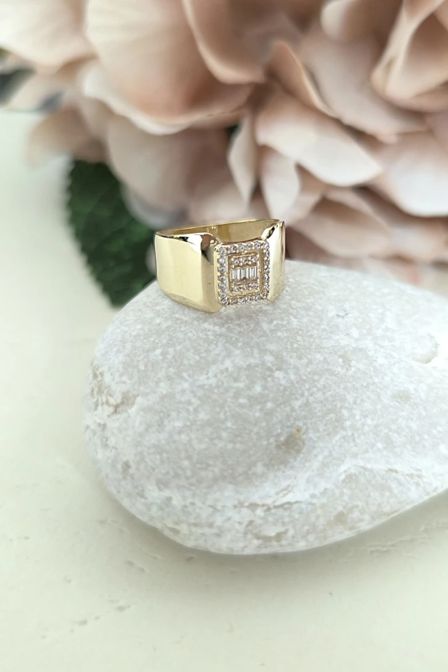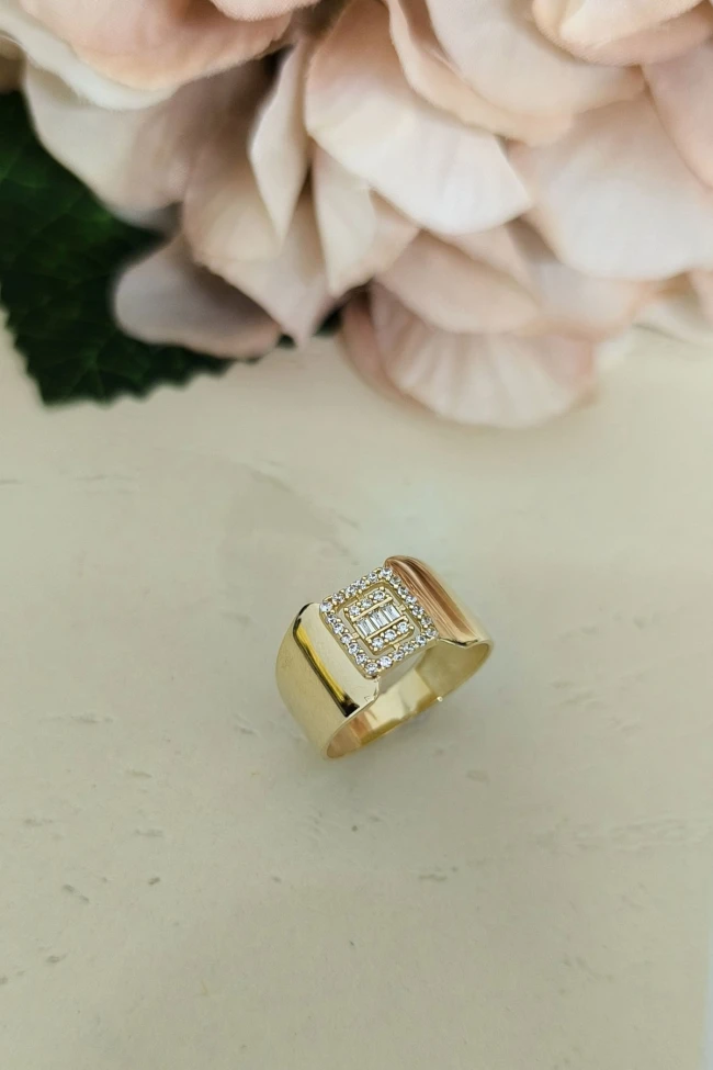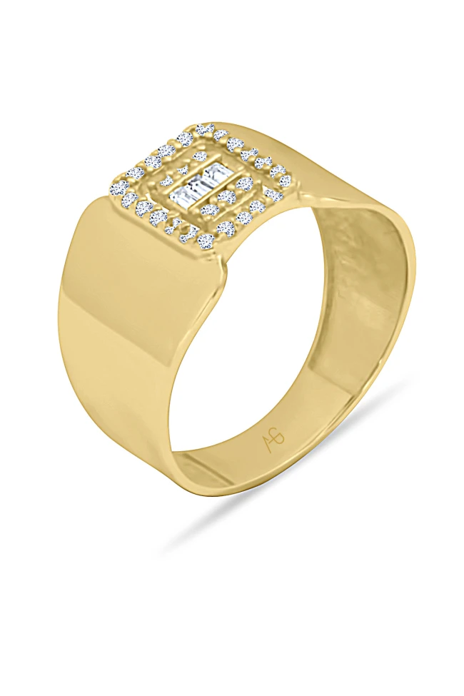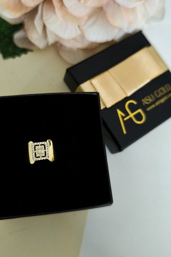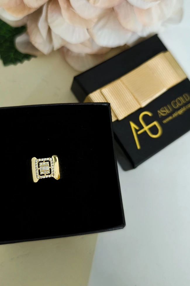 14 ayar sarı altın trend gösterişli tasarımıyla günlük kullanıma uygun parmağınızda stilinize hava katacak 2.70 gram ağırlığında baget taşlı yüzük.