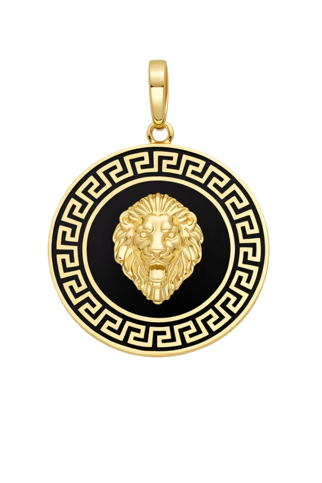 14 Ayar Altın Aslan Figürlü Grek Desen Siyah Mineli 9.70 Gr Ağırlığında Kolye Ucu.