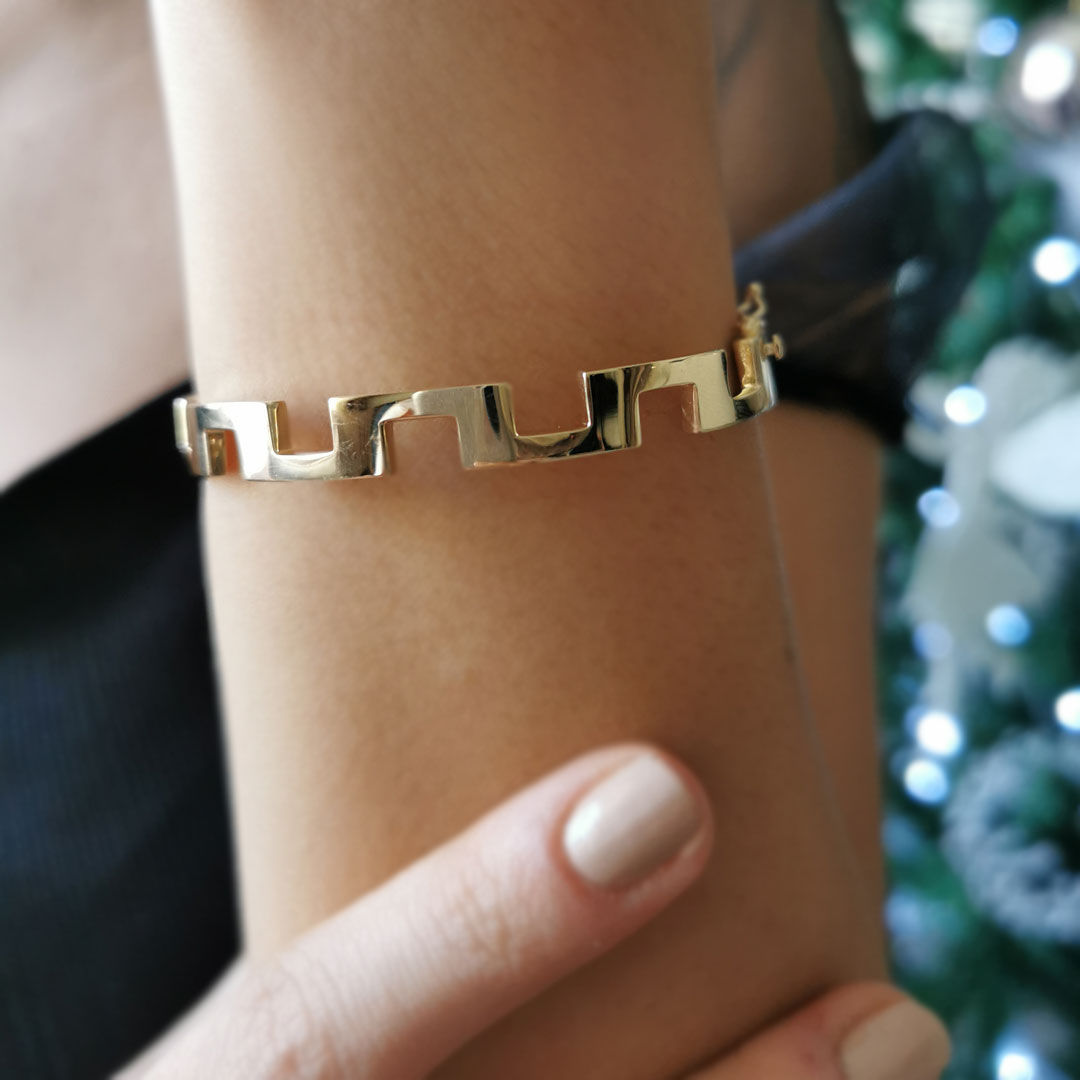 8.90 Gram Ağırlığında 14 Ayar Zig Zag Detaylı Tamtur Gulia Altın Kelepçe / Bilezik.