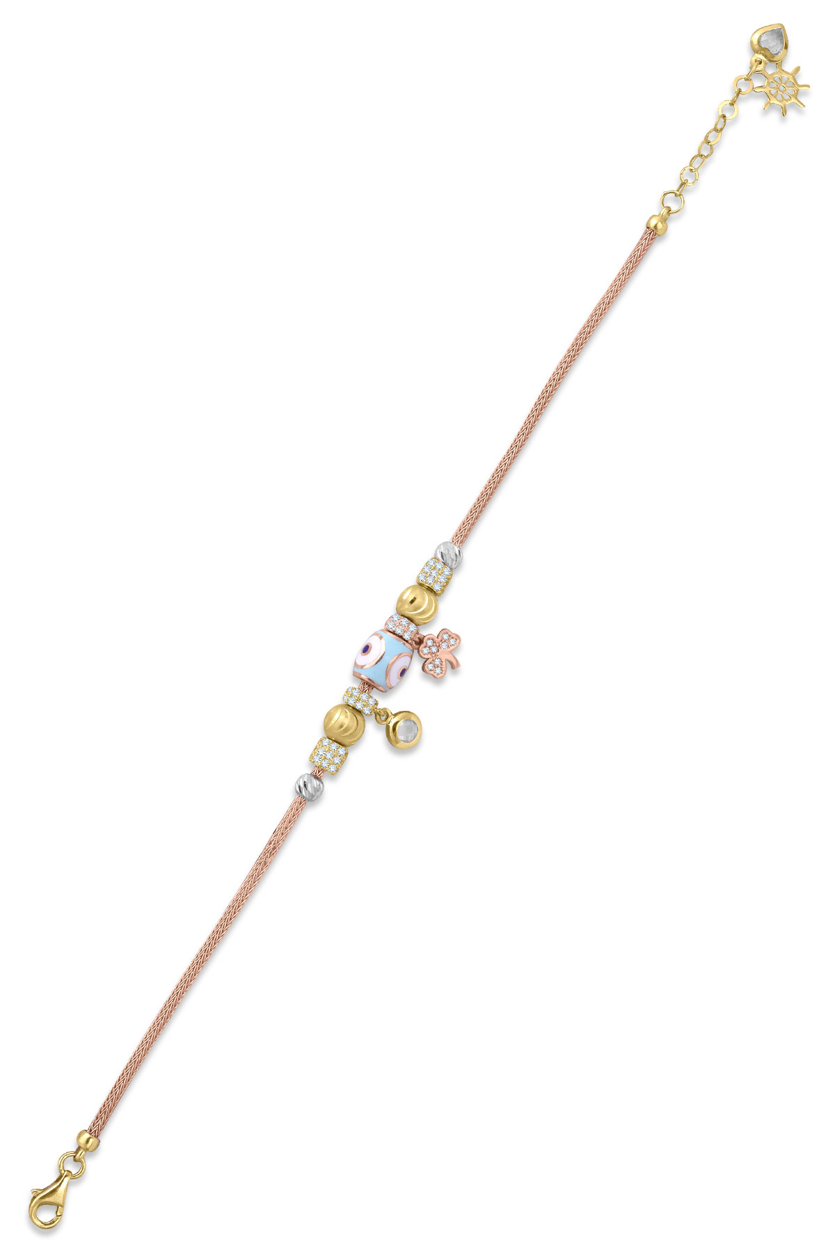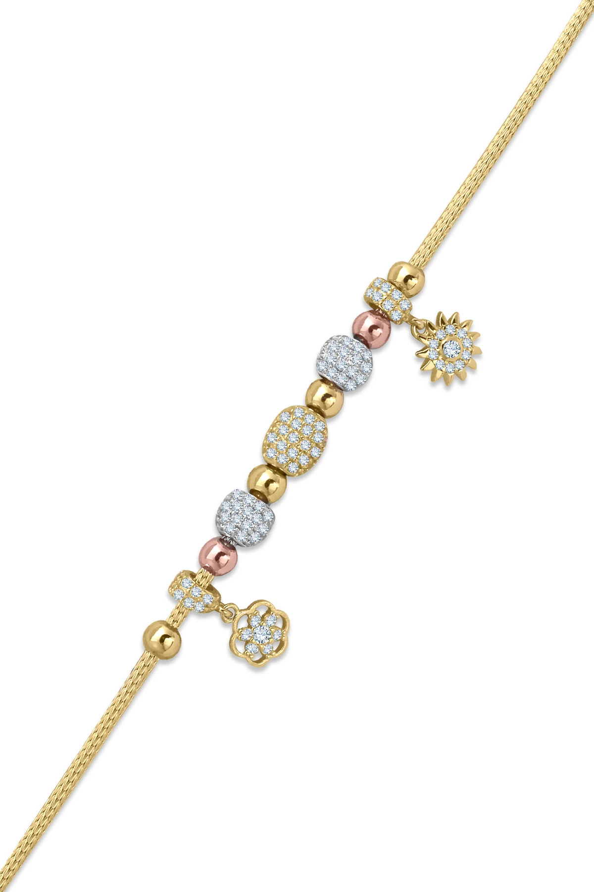 Modern, Spor Ve Günlük Kullanıma Uygun Güneş Ve Çiçek Tasarım 18.5 Cm Boyunda Işıl Işıl 6.50 Gr. Ağırlığında Charm 14 Ayar Altın Bileklik.