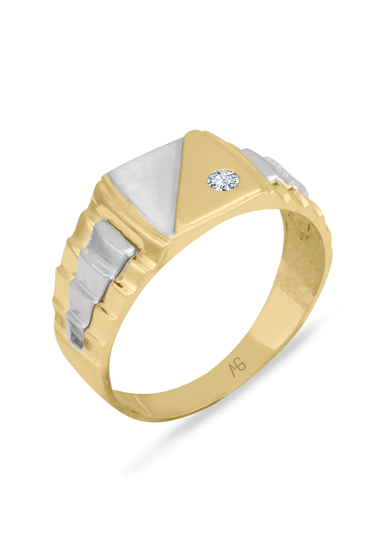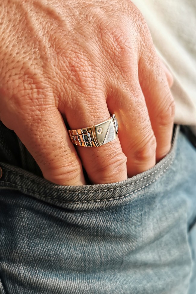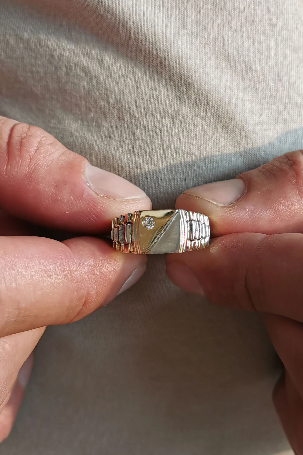 4.30 Gr. ağırlığında sarı altın rolex kollu ve taş detaylı kare bir modele sahip 14 ayar altın erkek yüzük.