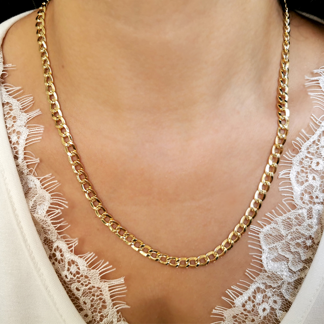 14 Ayar 7.50 gram ağırlığında 55 cm boyunda tüm sezon gömlek ve basic tişörlerinizle severek kullanacağınız, spor giyim tarzınıza da muhteşem uyum sağlayacak kadın ve erkek unisex kullanıma uygun altın gurmet zincir.