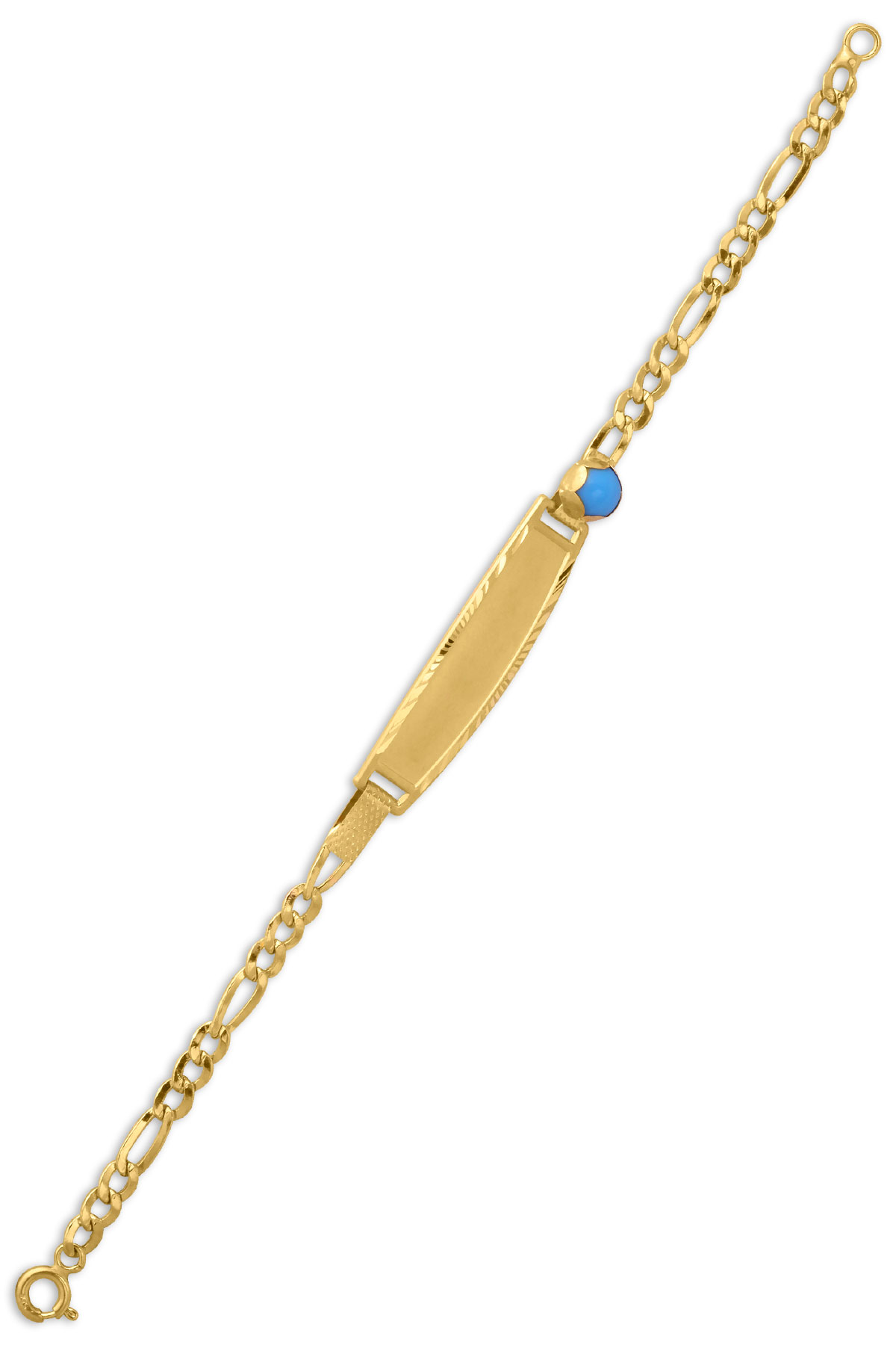 14 Cm boyunda günlük olarak da kullanıma uygun sağlam figaro zincir detaylı 14 ayar 1.85 gr ağırlığında altın firuze taş detaylı çocuk künyesi.