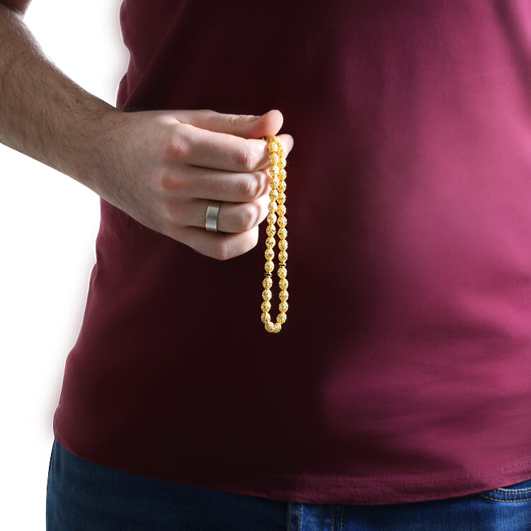 23,5 Cm uzunluğundaki ışıl ışıl motifli topları ile eskitme detaylı imamesiyle altın tespih modeli prestijli beylerin severek kullanacakları harika bir hediye alternatifi.