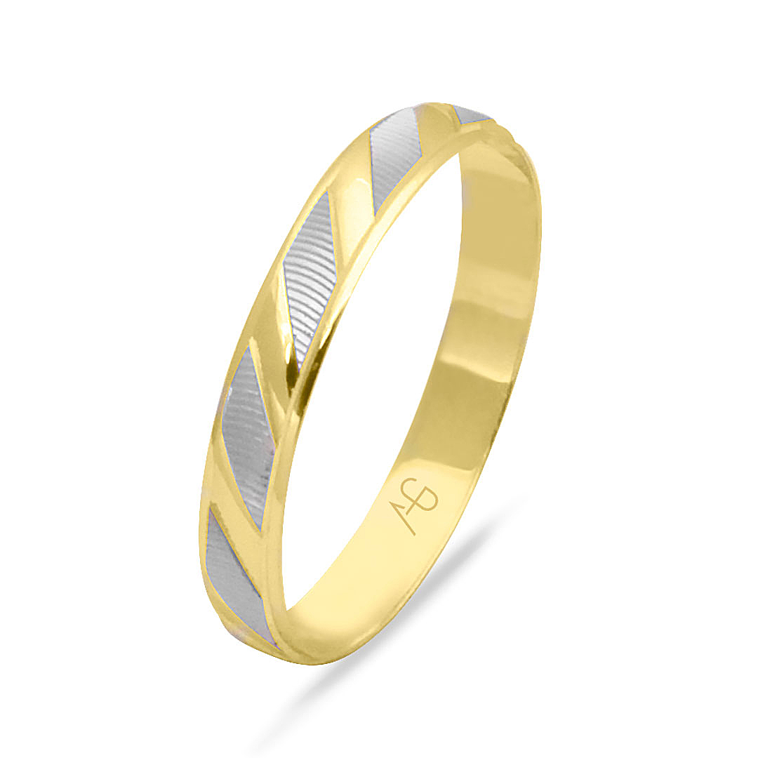 14 Ayar sarı altın çizgi desenli modeliyle şık duruşa sahip ince model günlük kullanıma uygun 1.60 gram ağırlığında taşsız hem kadın hem erkek için uygun unisex tasarım alyans.