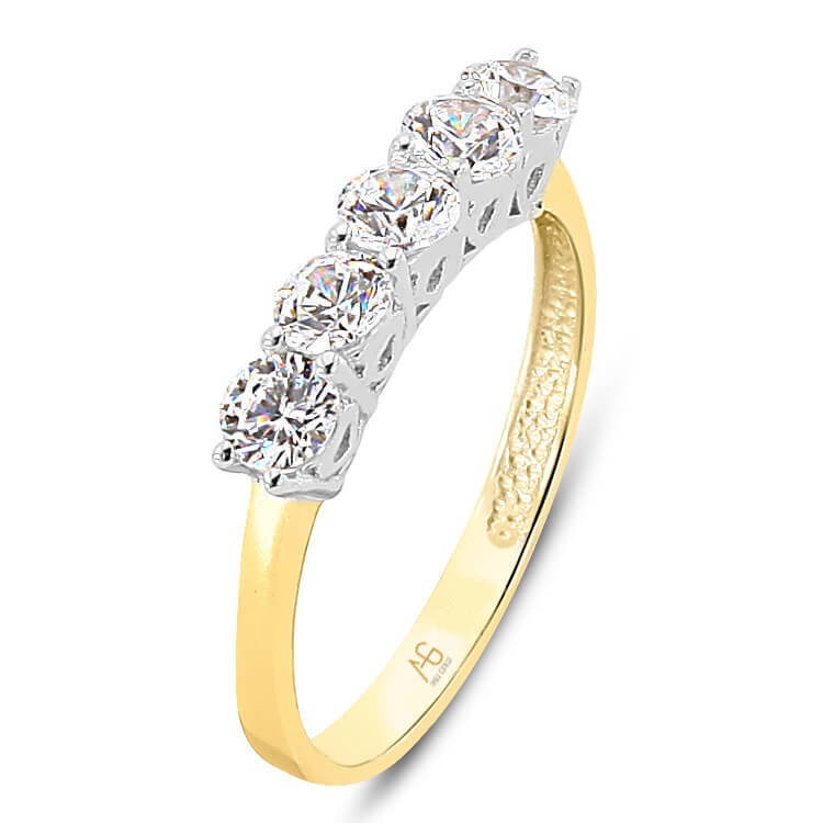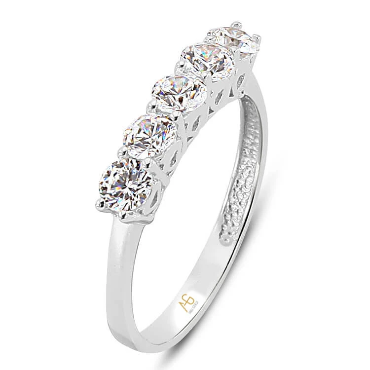 14 Ayar 2.00 gram ağırlığında zevkinize göre sarı yada beyaz altın tercihiyle satın alabileceğiniz ince ve zarif model zirkon taşlı 5 taş yüzük.