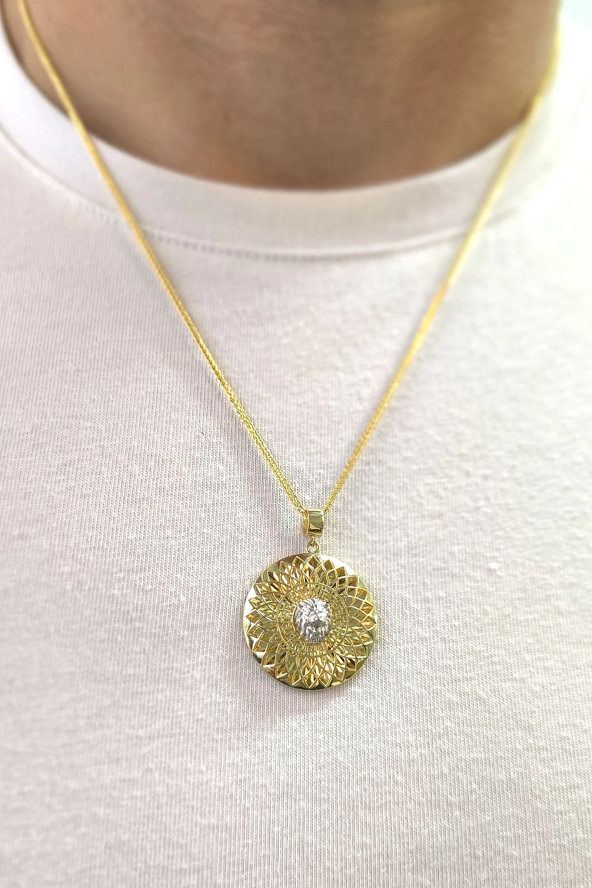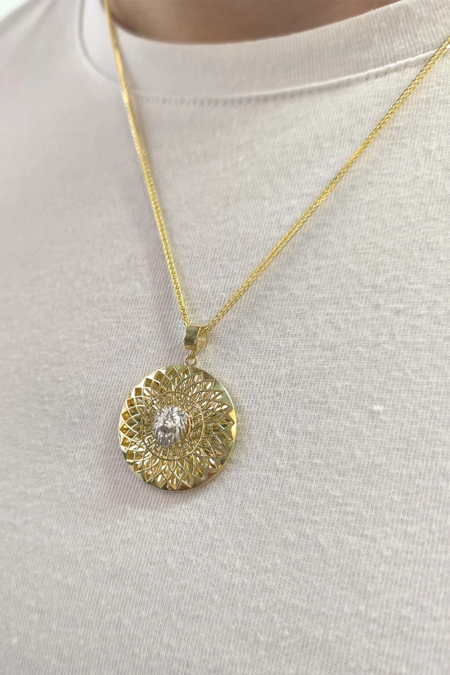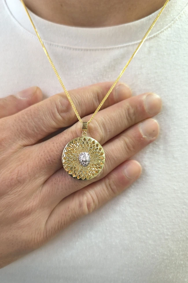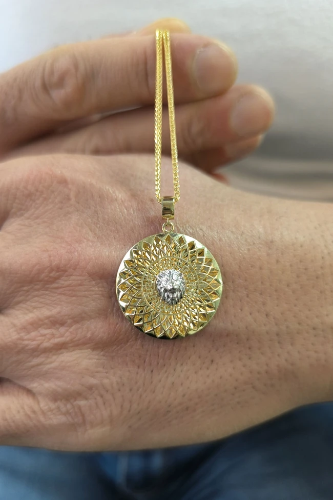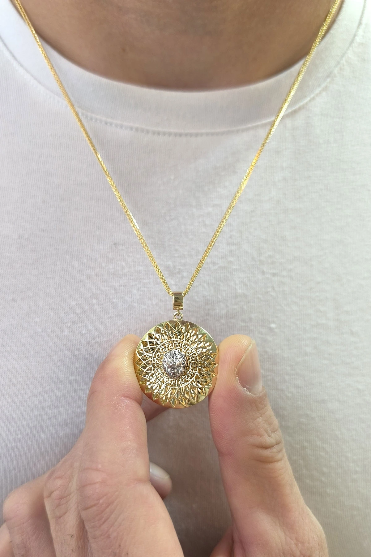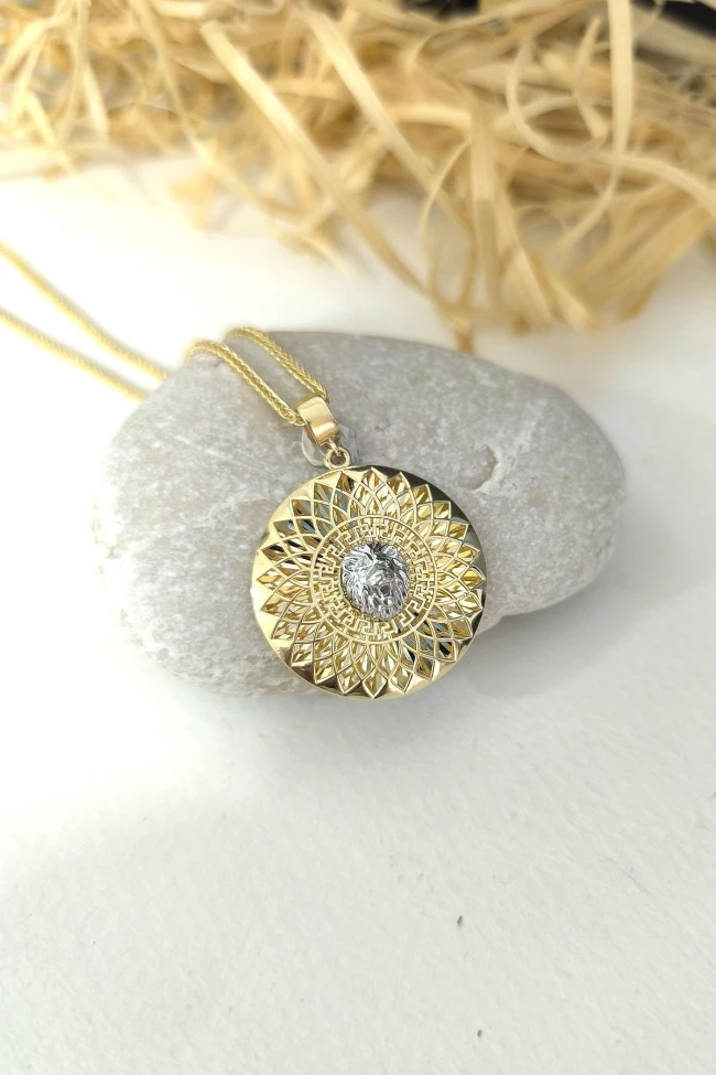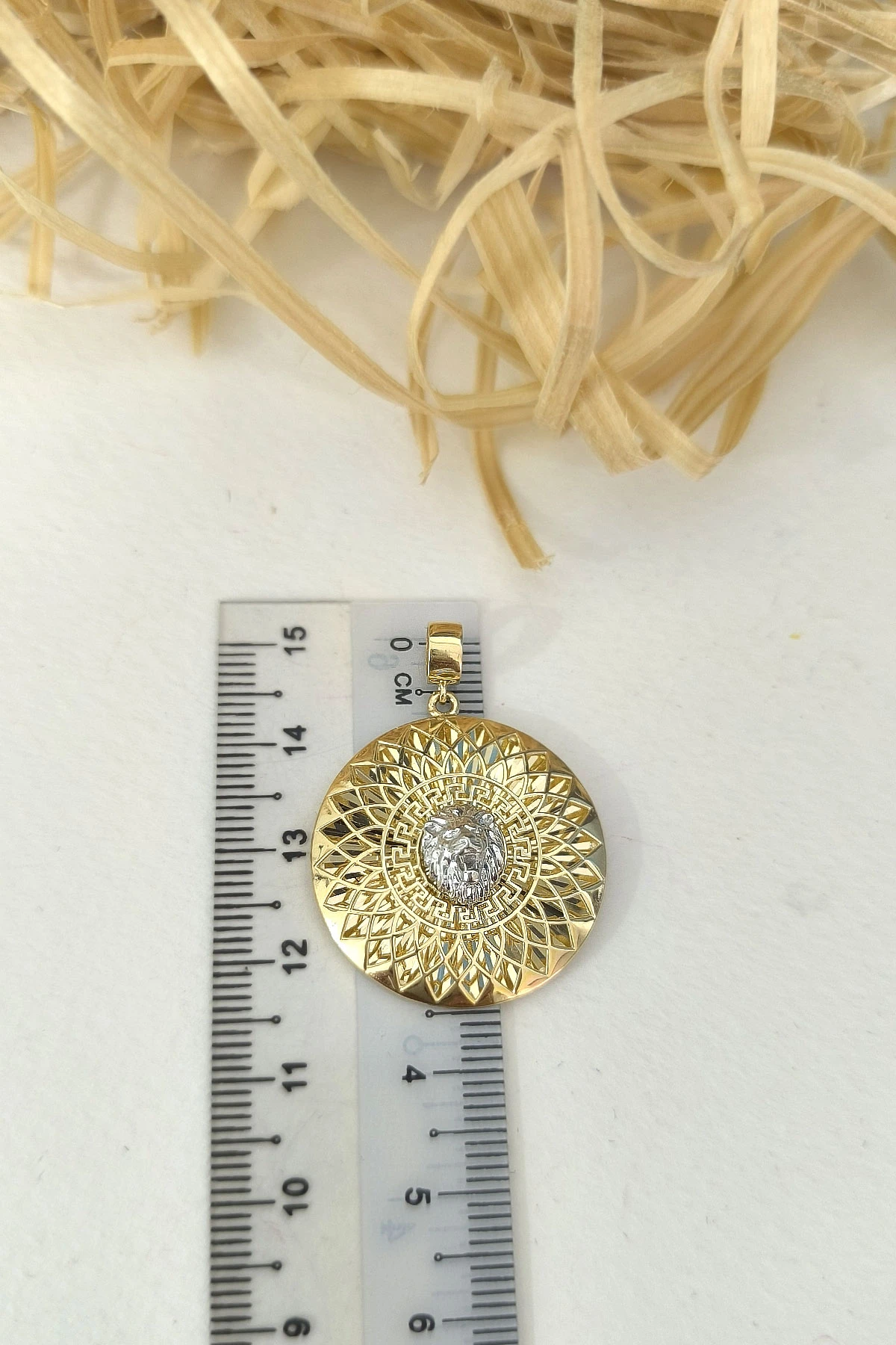 Işıltılı Modern Tarz 55 Cm Boyunda Spiga Zinciri İle Oldukça Şık Bir Modele Sahip 8.70 Gr. Ağırlığında 14 Ayar Altın Taşlı Aslan Başı Erkek Kolye.