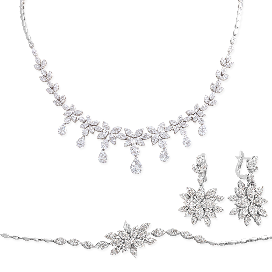 18 Ayar altın ışıltılı ve gösterişli model 50,55 gram ağırlığında F/SI kalite 10,09 ct pırlantalı bileklik, küpe ve gerdanlıktan oluşan gösterişli ve modern tasarımlı düğün, nişan takı seti. Özel günlerinizde bir gün değil size bir ömür eşlik etsin.. *Ürünlerimiz faturalı ve sertifikalıdır güvenle satın alabilirsiniz, özel hediye kutusunda ücretsiz kargo ile gönderilecektir.