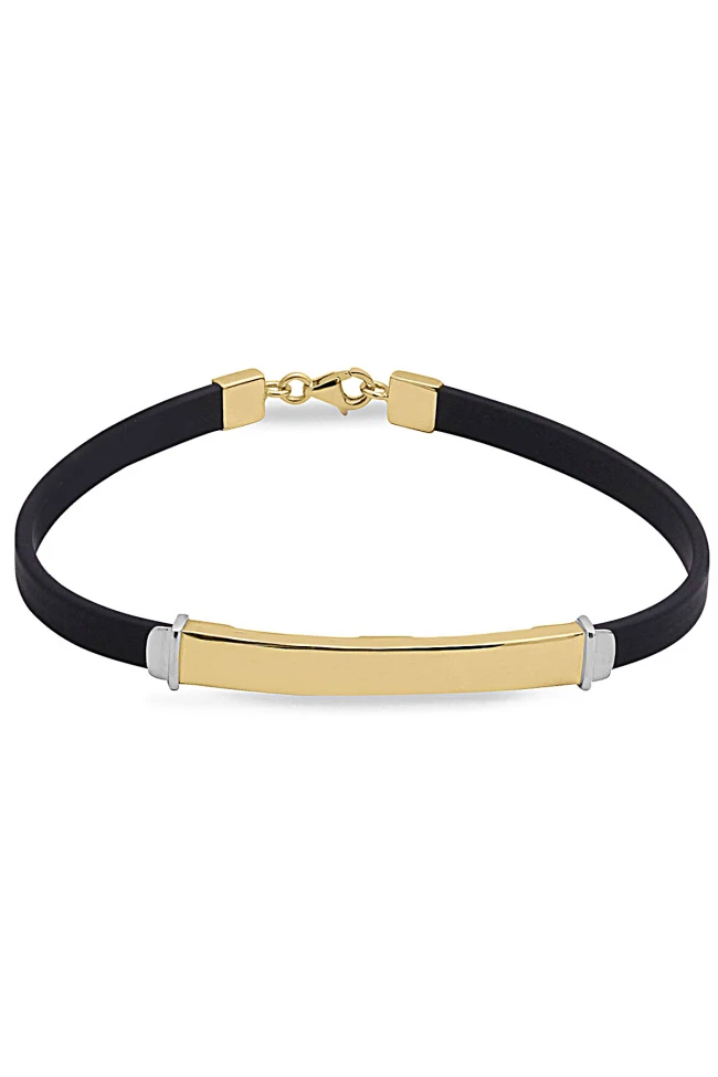 Künye olarak da sade olarak da kullanıma sahip spor kauçuk detaylı taşsız tasarım, günlük kullanıma uygun, özel günlerinde sevdiklerinize şık bir hediye seçeneği olacak 4.60 gr ağırlığında 14 ayar altın erkek bileklik.