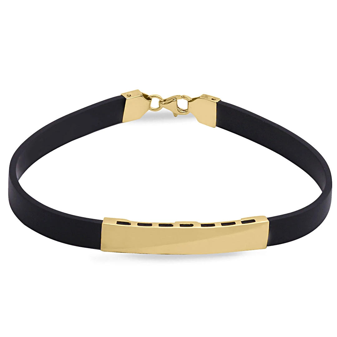 Künye olarak da sade olarak da kullanıma sahip spor kauçuk detaylı taşsız tasarım, günlük kullanıma uygun, özel günlerinde sevdiklerinize şık bir hediye seçeneği olacak 2.70 gr ağırlığında 14 ayar altın erkek bileklik.