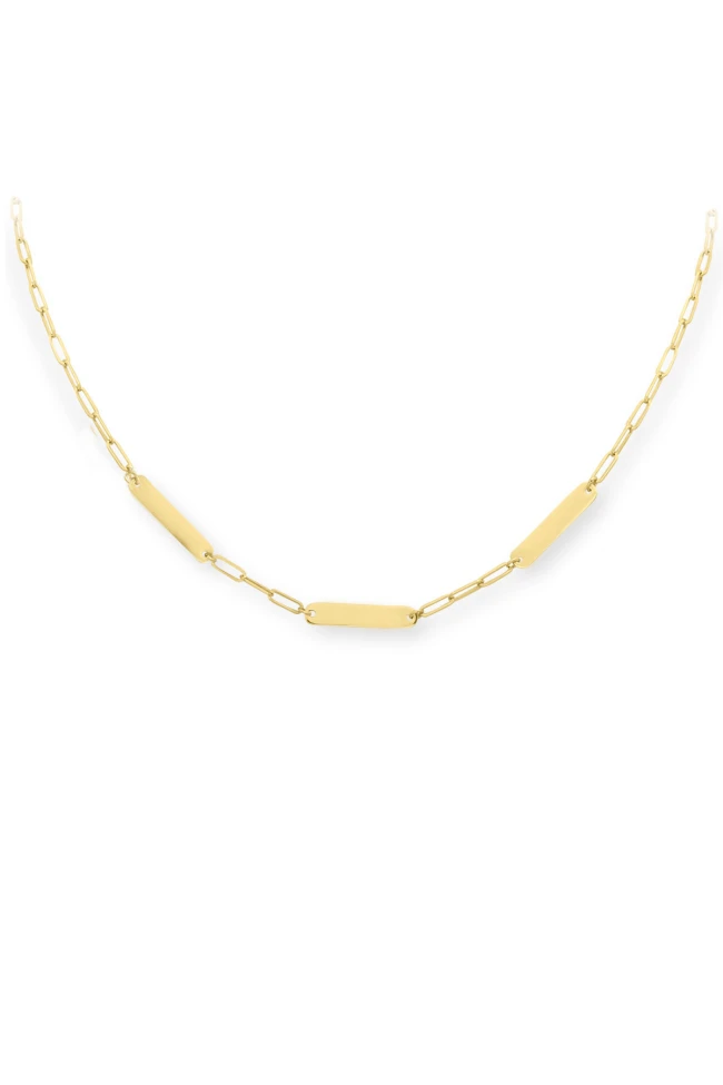 14 Ayar 2.90 gram ağırlığında 40 cm boyunda tüm sezon gömlek ve basic tişörlerinizle severek kullanacağınız, spor giyim tarzınıza da muhteşem uyum sağlayacak kadın ve erkek unisex kullanıma uygun altın parçalara isim yazdırabileceğiniz tasarım ataç zincir kolye.