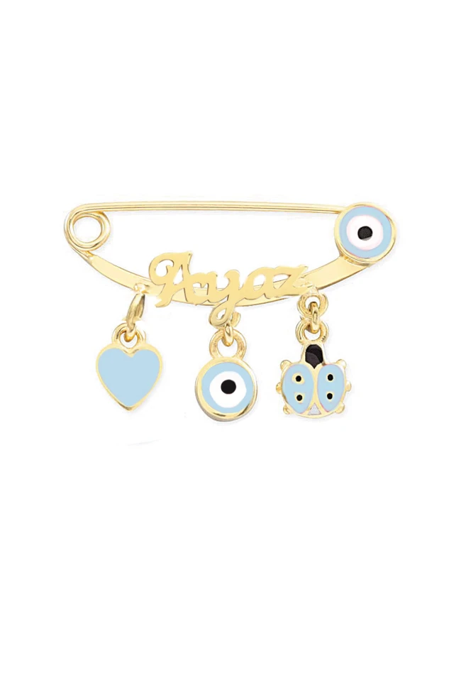14 ayar 2.50 gr ağırlığında erkek bebek altın omuz iğnesi.