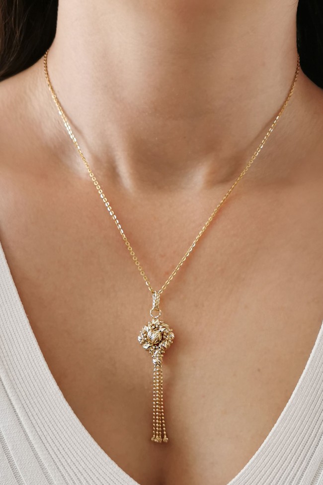4.50 Gram Ağırlığında Çiçek Tasarım Dorika Top Detaylı Gösterişi İle Dikkatleri Üzerine Toplayan 14 Ayar Günlük ve Şık Bir Havaya Sahip 6 Cm Boyunda Altın Sallantılı İtalyan Kolye.