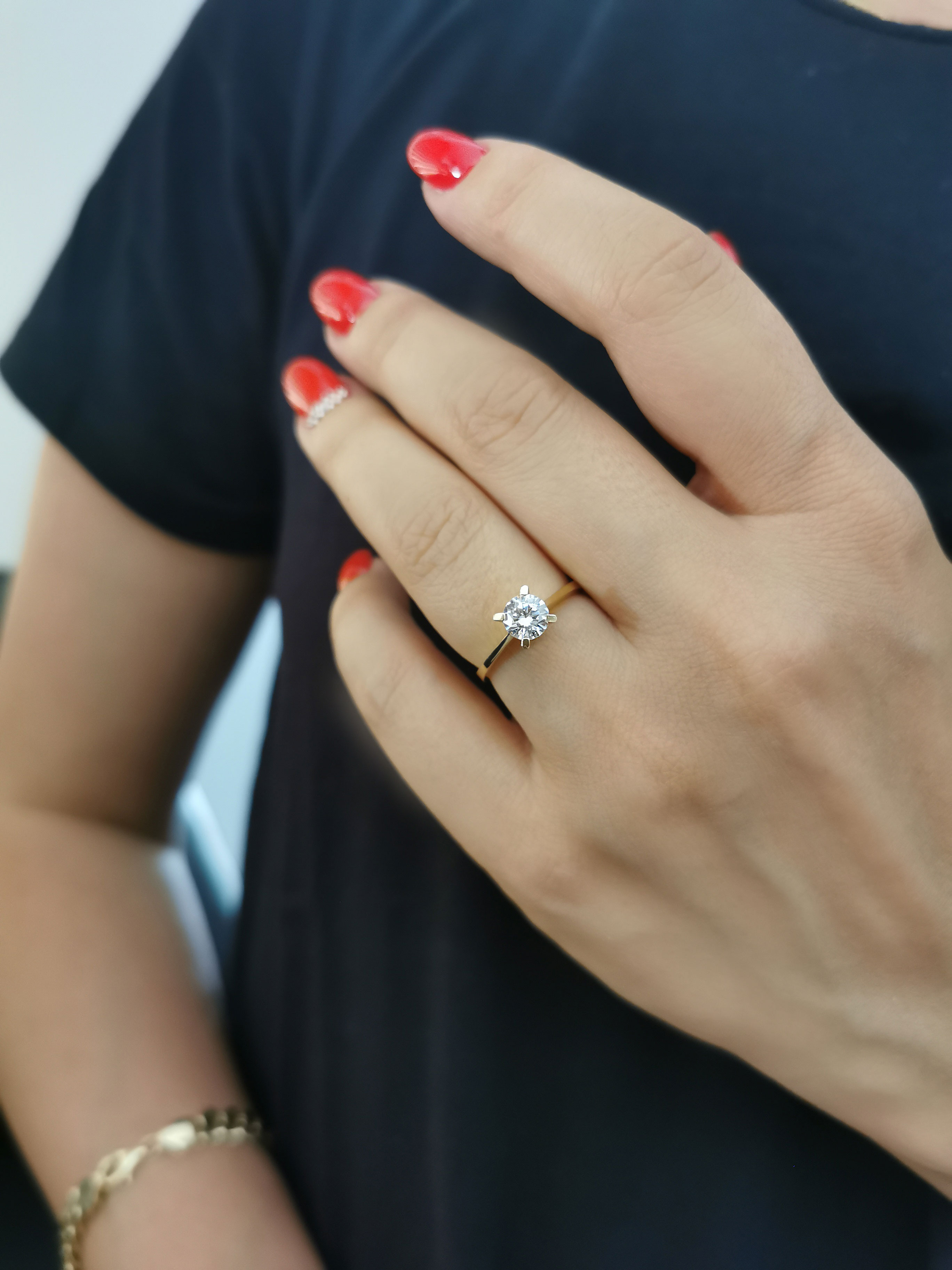 14 Ayar 2.00 gram ağırlığında taşsız kol detaylı günlük kullanıma uygun şık, modern bir tasarıma sahip sade model evlilik teklifi için de tercih edebileceğiniz italyan kol altı tırnak altın tektaş yüzük. Modelin manken fotoğrafında elde duruşunu görebilirsiniz, oldukça şık bir duruşu vardır.