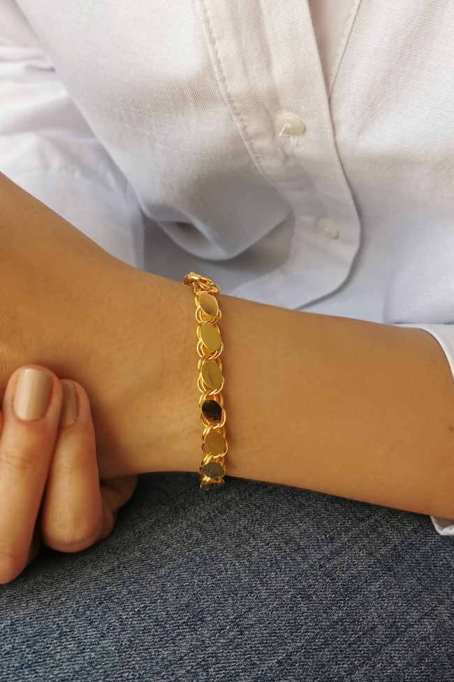 Nostalji Tasarımı İle 17 Cm Boyunda 6.55 Gr. Ağırlığında 14 Ayar Altın Günlük Kullanıma Uygun Pullu Zincir Bileklik.