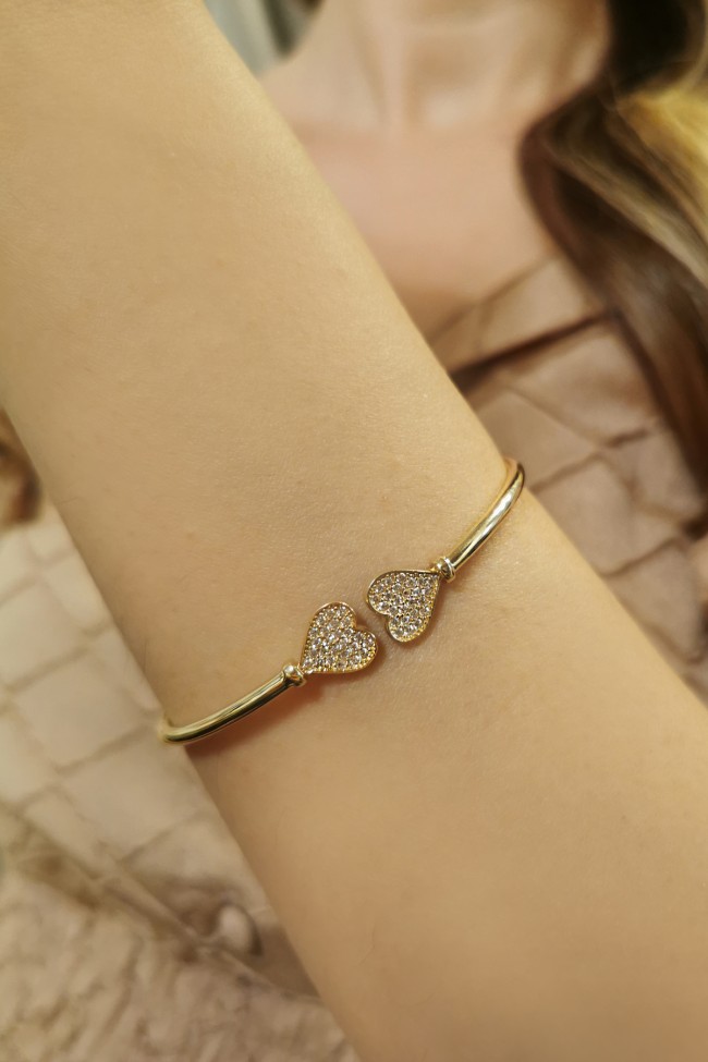 5.00 Gram Ağırlığında Zikon Taş Detaylı Spor Model 14 Ayar Altın Modern Kalpli Kadın Bilezik.