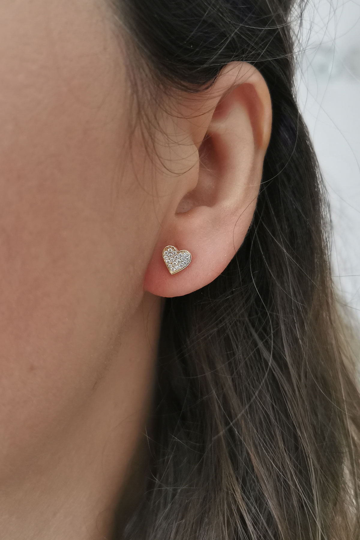 Kalp model sevimli tasarımıyla taşsız minimal günlük olarak kullanıma uygun 14 ayar 1.20 gr ağırlığında altın vidalı küpe.