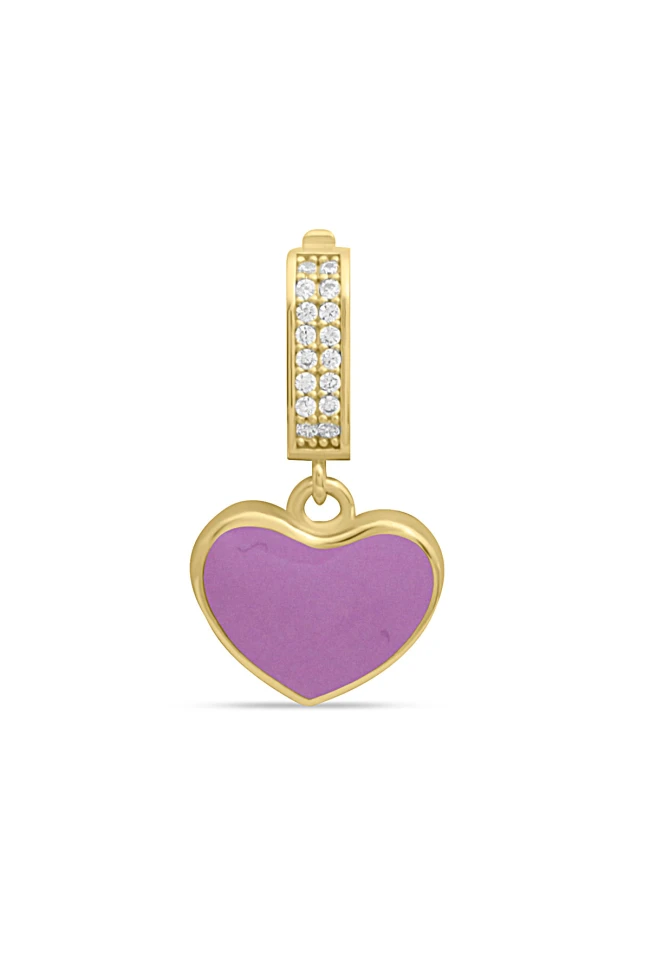 2.3 Cm Boyunda 14 Ayar Lila Renkli Mineli Spor Tasarıma Sahip Işıl Işıl Günlük Kullanıma Uygun 2.15 Gr. Ağırlığında Altın Kalp Kolye Ucu.