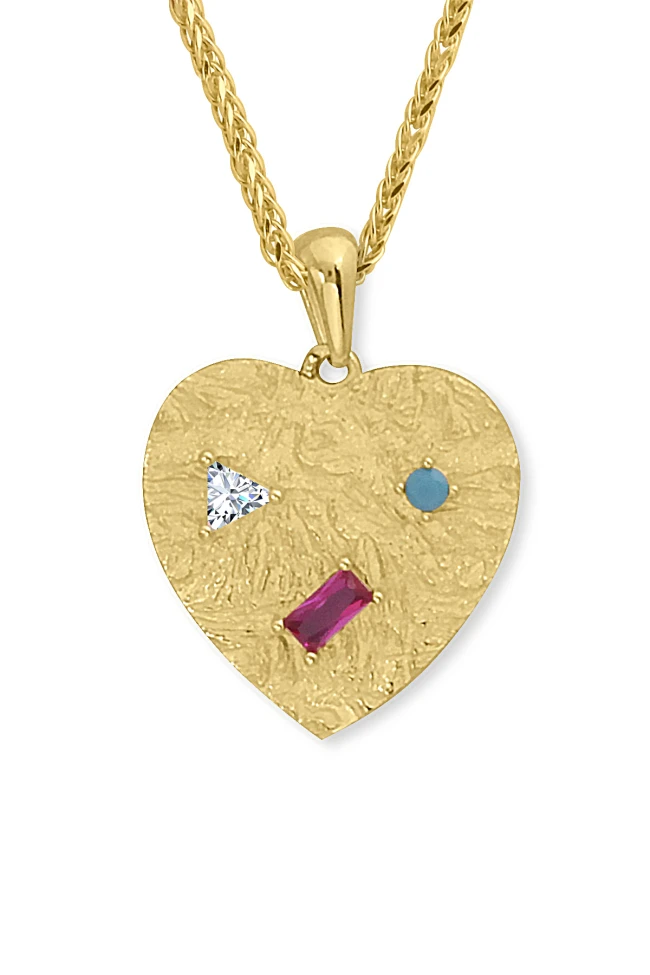 14 Ayar 3.00 gram ağırlığında 45 cm boyunda spiga ışıl ışıl zinciriyle tüm gün gömlek ve basic tişörlerinizle severek kullanacağınız, spor giyim tarzınıza da muhteşem uyum sağlayacak 2.5 cm otantik tasarım kalp model otantik renkli taş detaylı kolye.