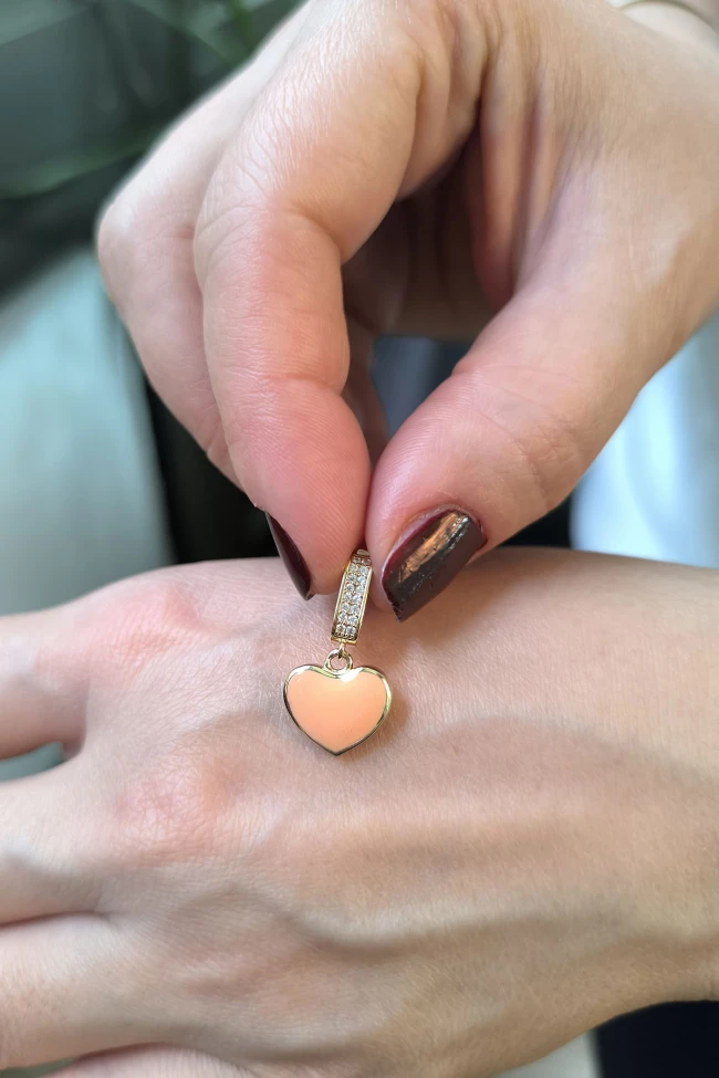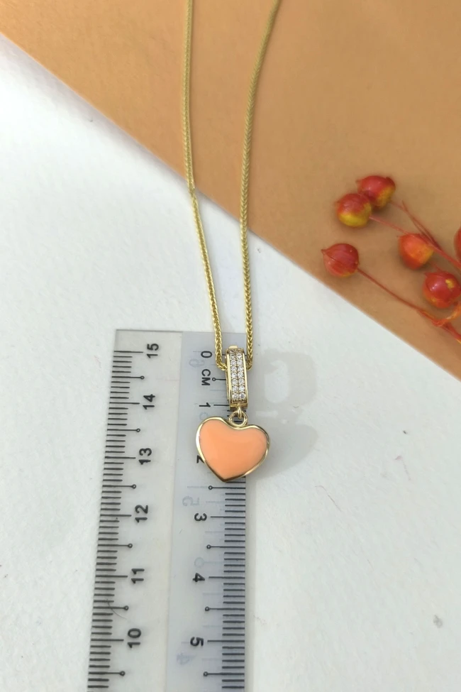2.3 Cm Boyunda 14 Ayar Turuncu Renkli Mineli Spor Tasarıma Sahip Işıl Işıl Günlük Kullanıma Uygun 2.15 Gr. Ağırlığında Altın Kalp Kolye Ucu.