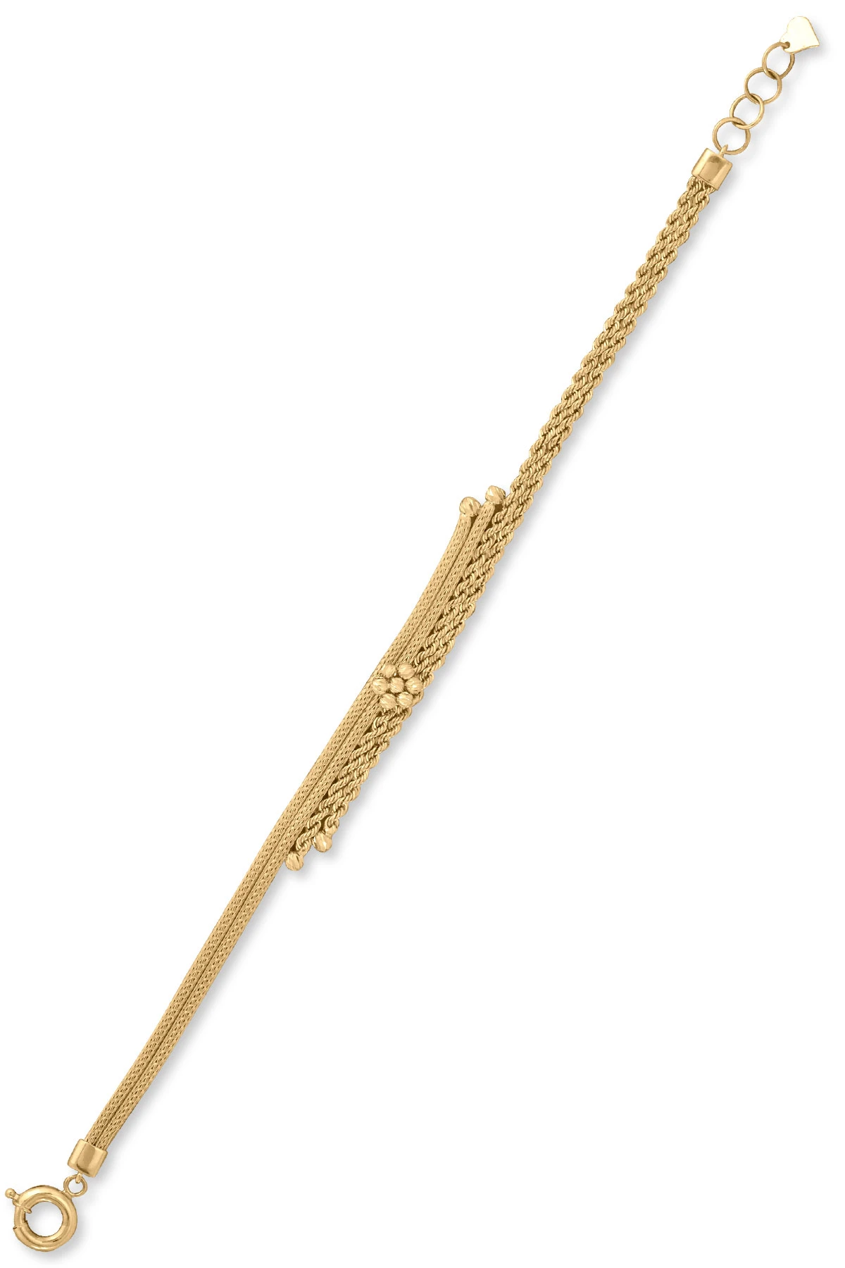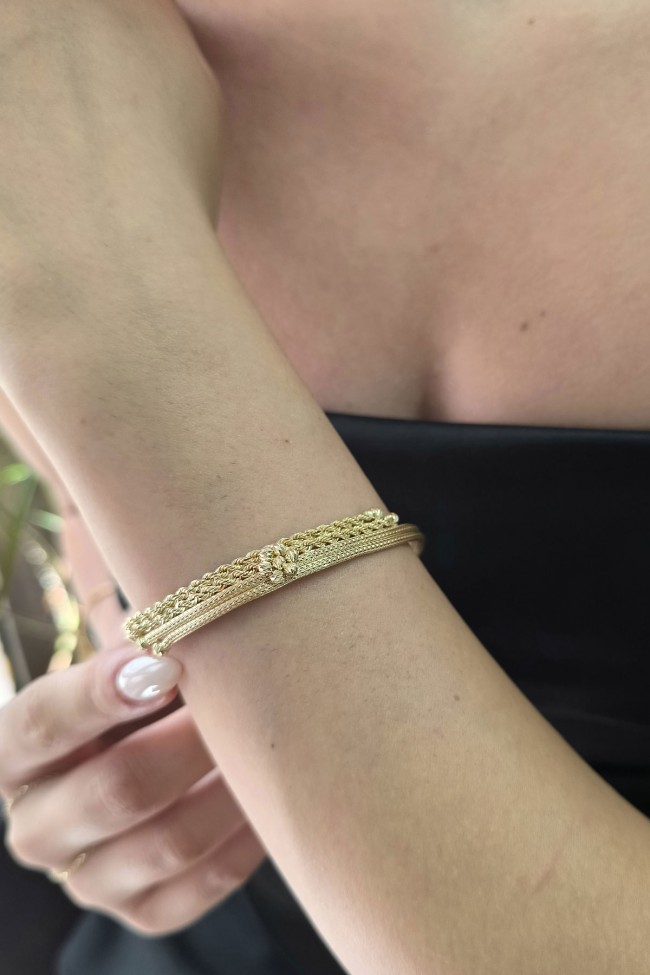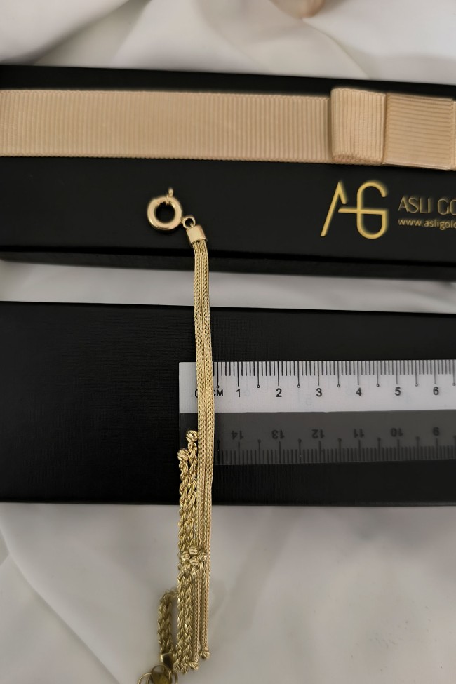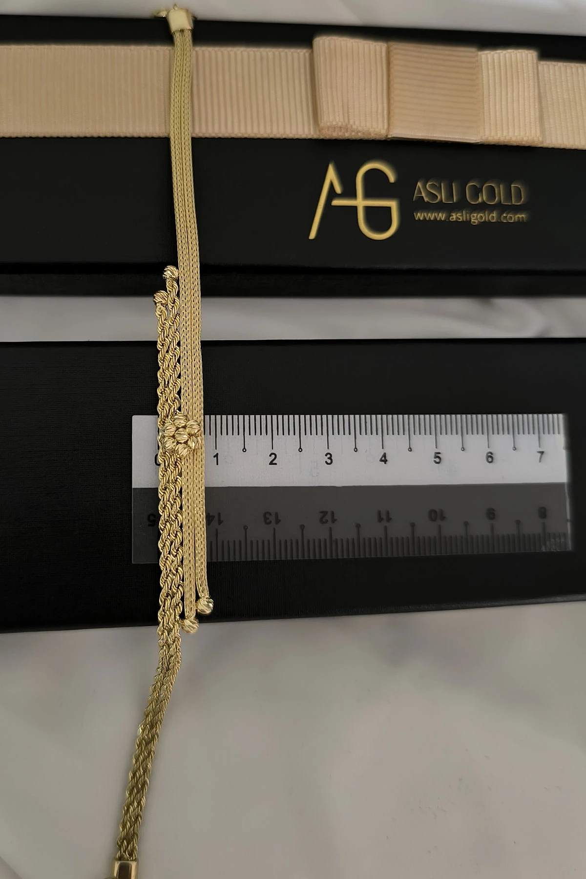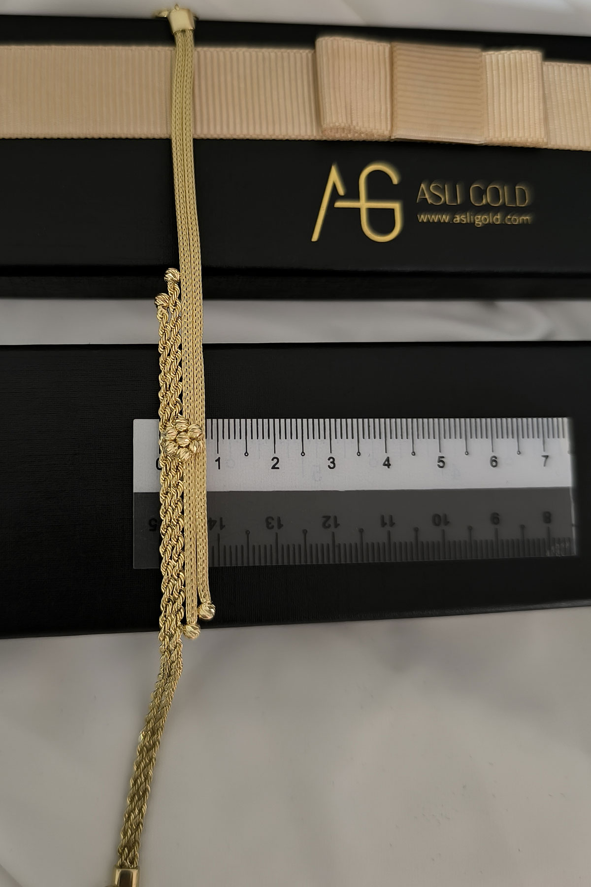 14 Ayar hafif, modern ve havalı tasarım günlük kullanıma uygun taşsız ışıl ışıl dorika toplu çiçek parçası ile oldukça zarif bir model 6.30 gram ağırlığında altın bileklik.