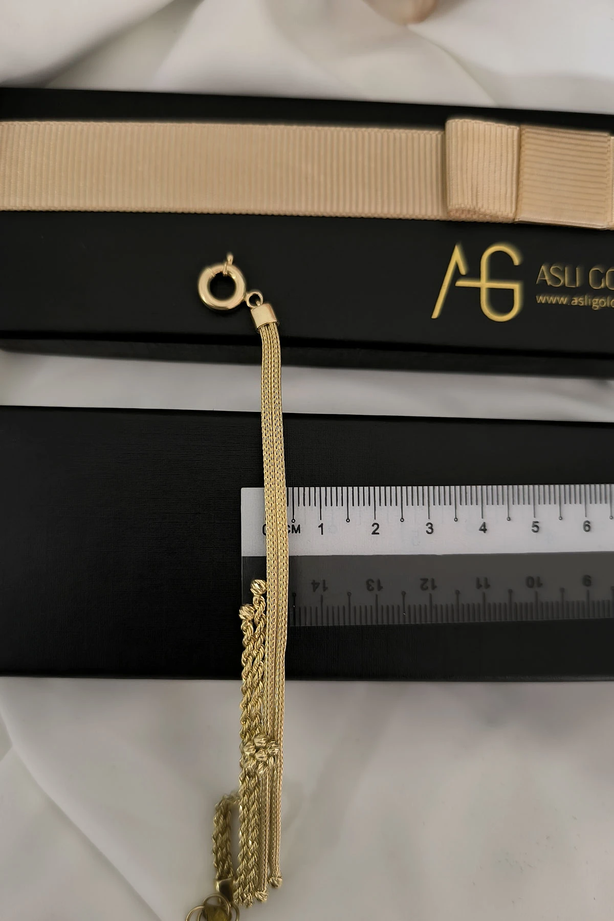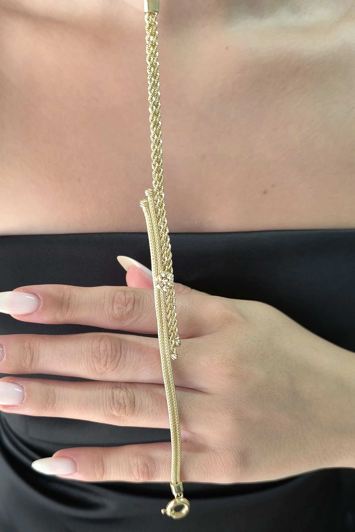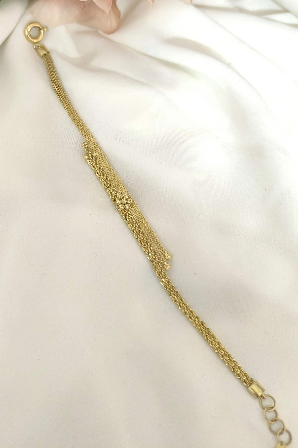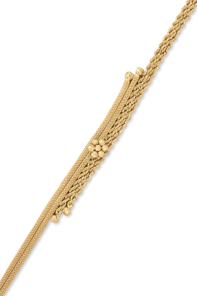 14 Ayar hafif, modern ve havalı tasarım günlük kullanıma uygun taşsız ışıl ışıl dorika toplu çiçek parçası ile oldukça zarif bir model 6.30 gram ağırlığında altın bileklik.
