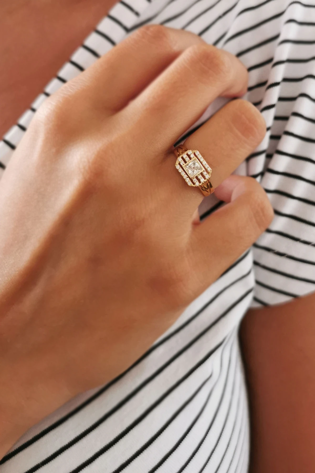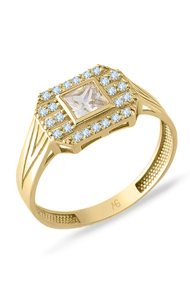 1.65 Gram Ağırlığında Otantik Bir Tarza Sahip Günlük Kullanıma Uygun Zirkon Kare Taşlı 14 Ayar Altın Tasarım Yüzük.