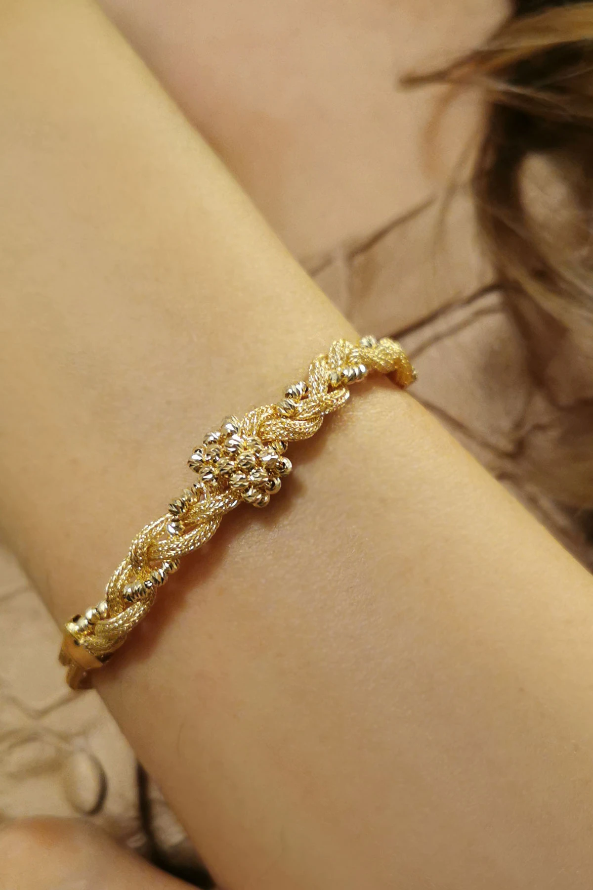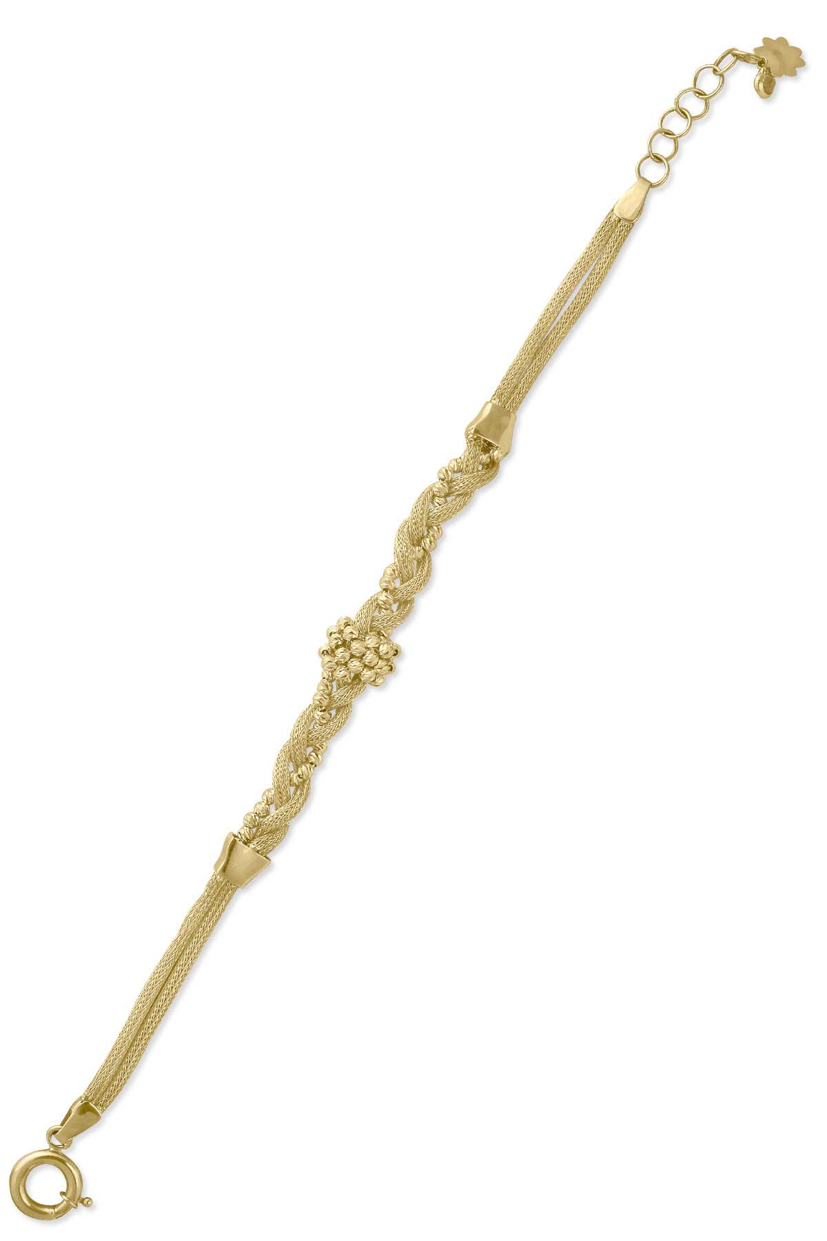 9.80 Gram Ağırlığında 20 Cm Karışık Örgü Tasarımlı Dorika Toplu Işıl Işıl Detaylarıyla Tüm Gün Severek Kullanacağınız 14 Ayar Altın Fantazi Bileklik.