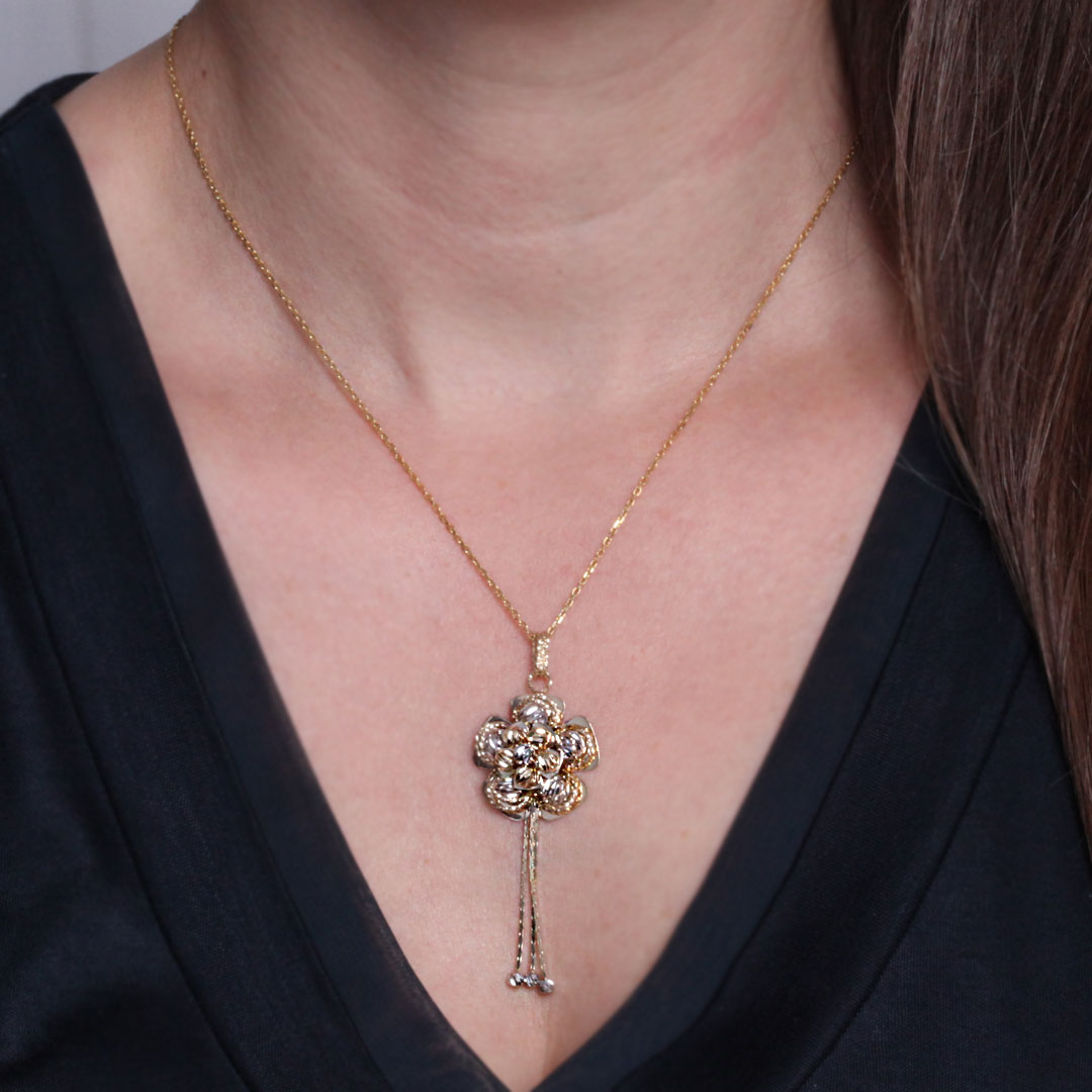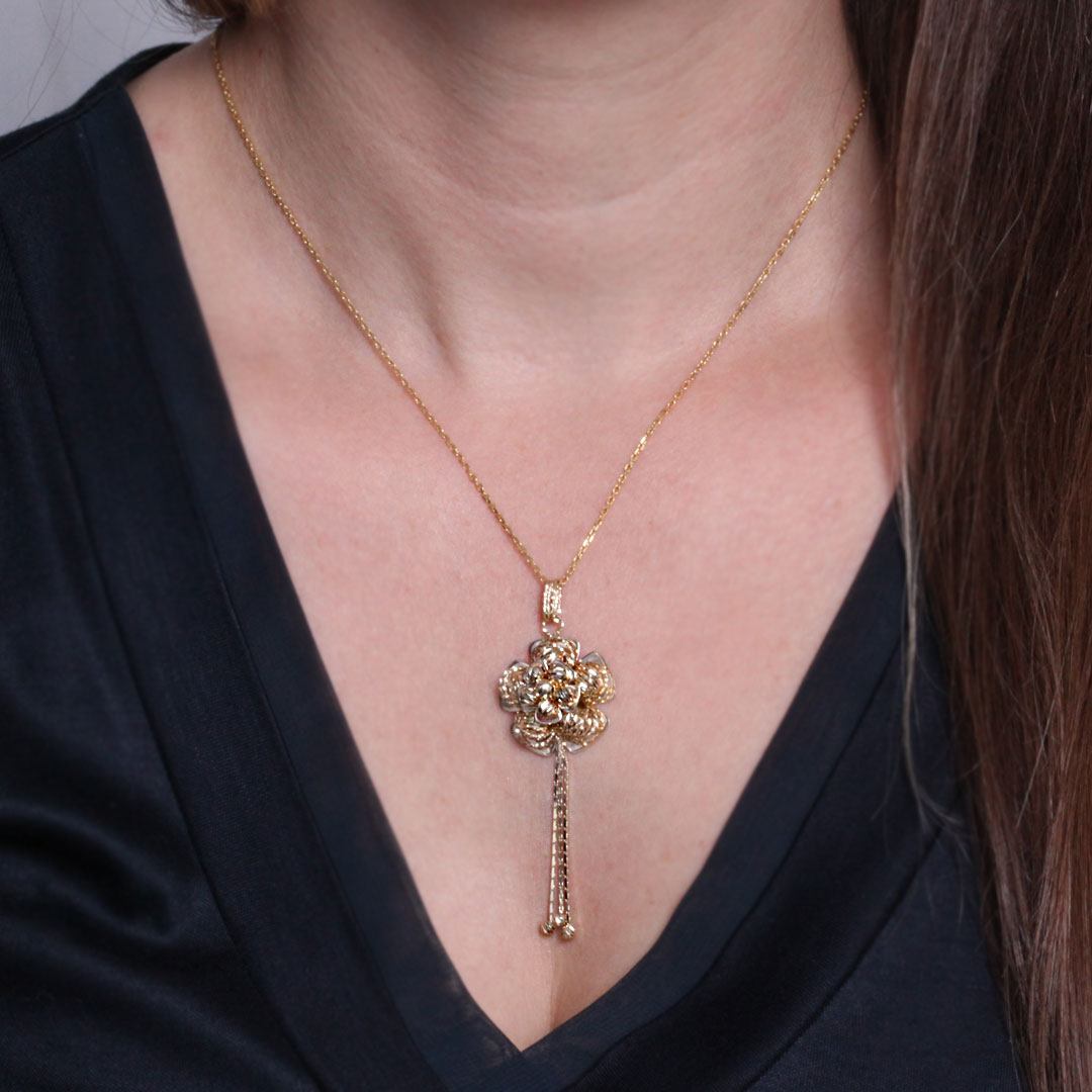 7.80 Gr ağırlığında gösterişli ve şık bir duruşa sahip farklı zincir boyu seçenekleri ile zevkinize göre satın alabileceğiniz ışıl ışıl dorika top detaylı katlı çiçek kolye. *Ürünlerimiz faturalıdır güvenle satın alabilirsiniz, özel hediye kutusunda ücretsiz kargo ile gönderilecektir.