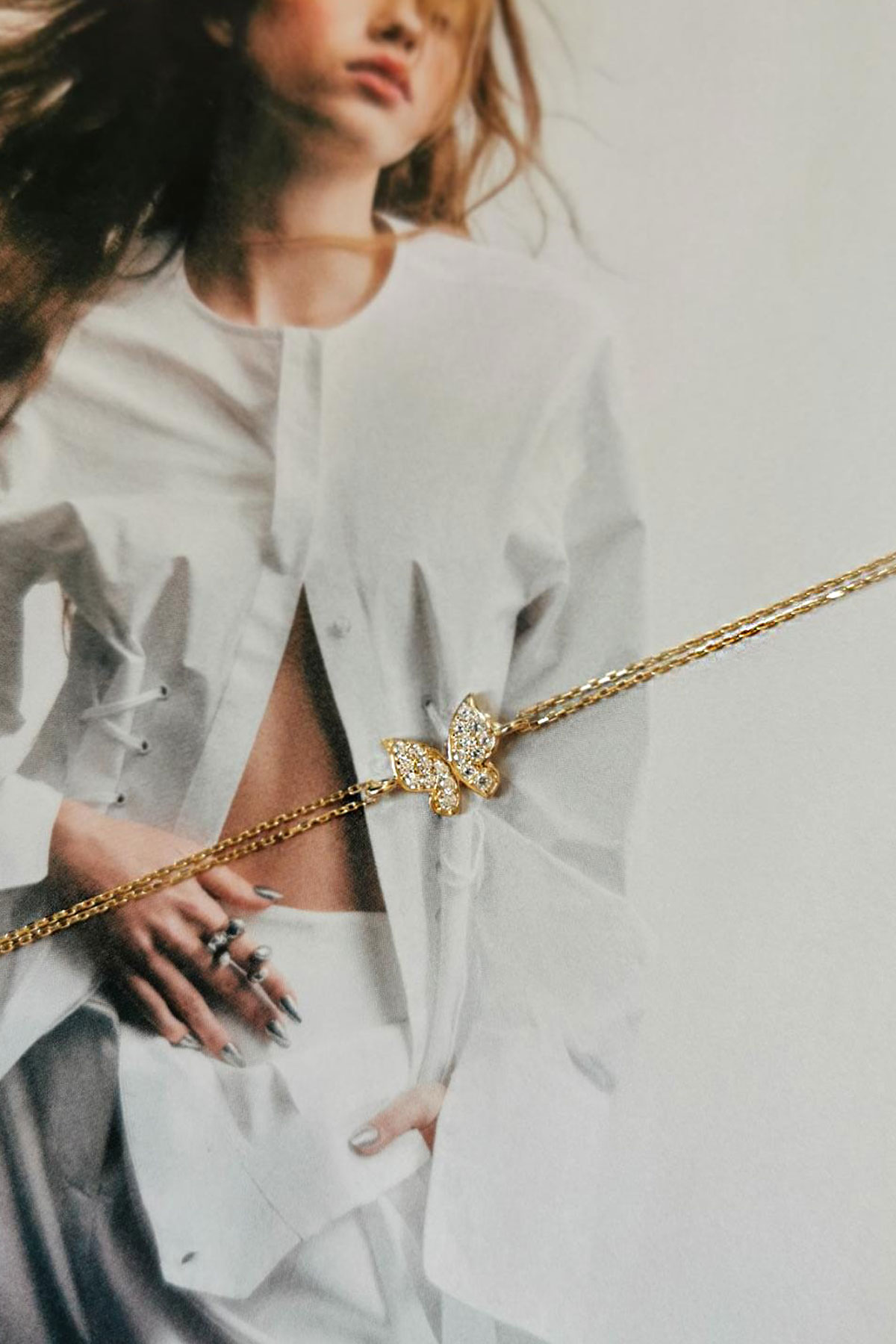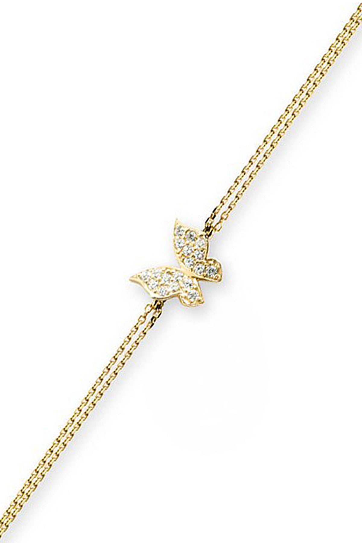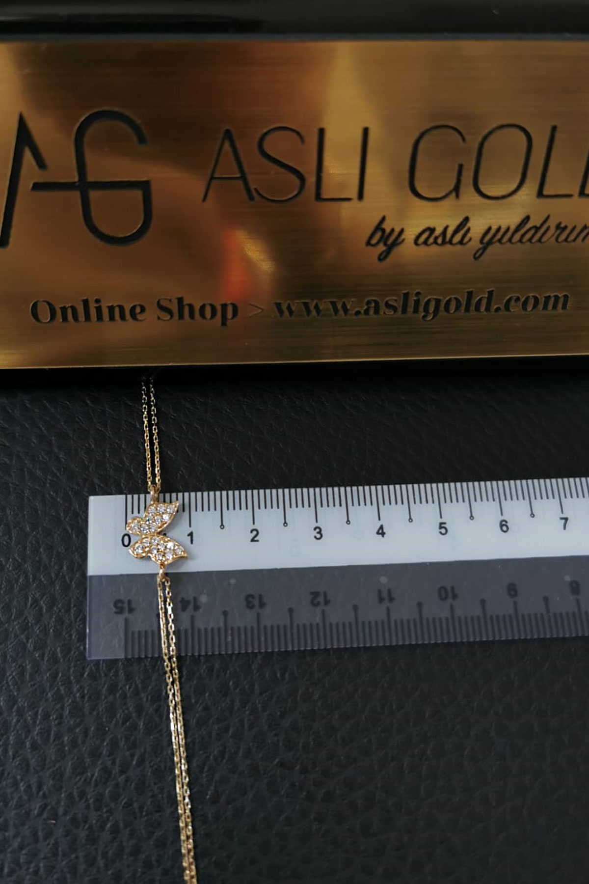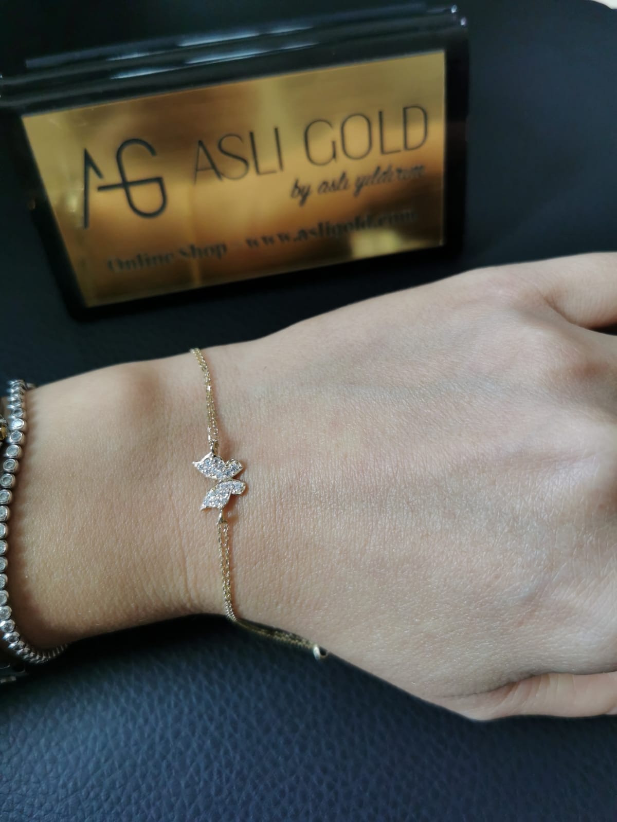 Günlük kullanıma uygun taşlı minimal tasarım 14 ayar altın 1.40 gram ağırlığında 17 cm boyunda kelebek model bileklik.