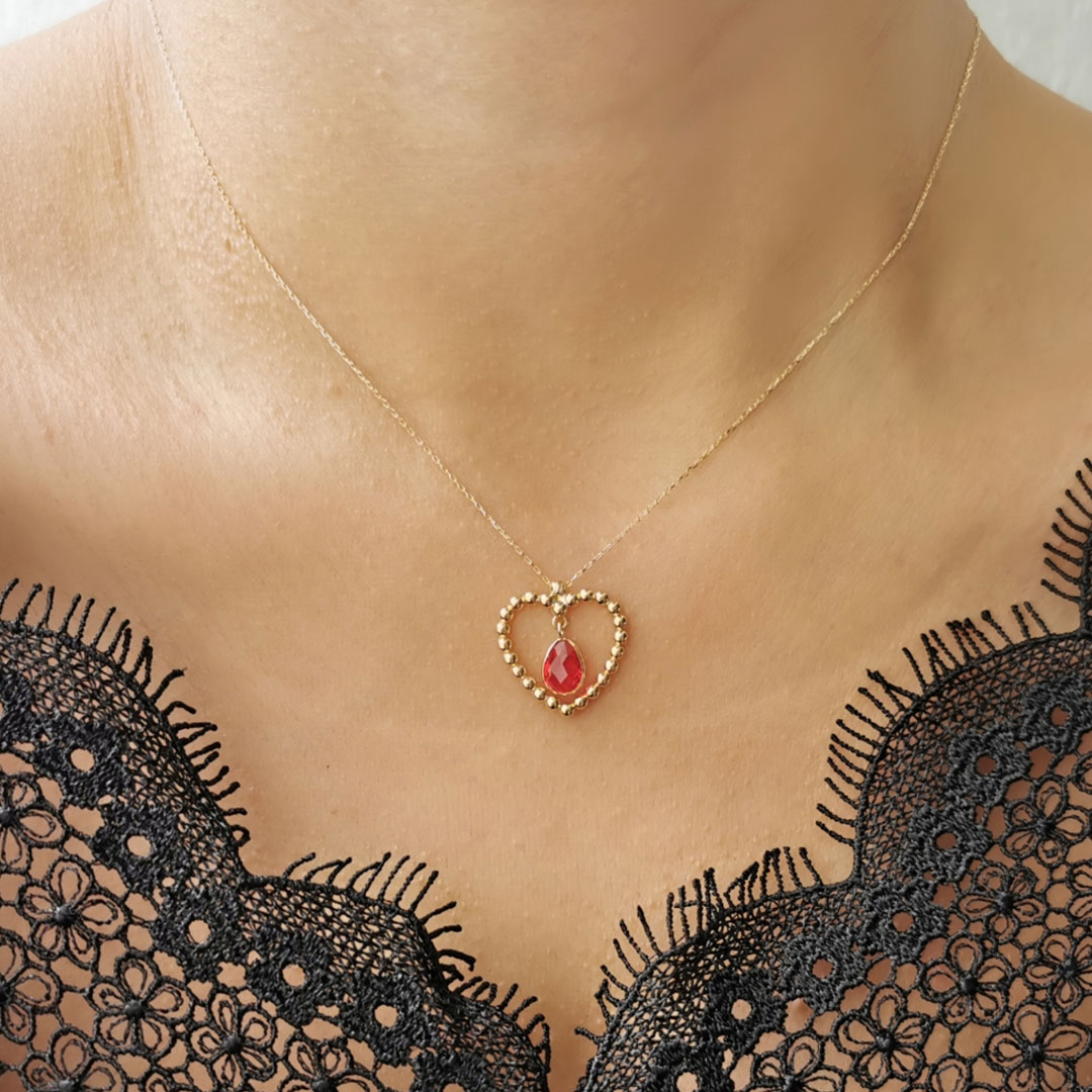 2.50 Gr. 45 Cm Forse Zincirli Zirkon Kırmız Damla Taşlı Altın Kalp Model Kadın Spor Kolye. Aşkınızı ve sevginizi anlatmanın en ışıltılı yolu kalp kolyeler her zaman doğru ve özel seçimlerdendir. Spor şık ve modern duruşu ile günlük kullanıma uygundur. *Ürünlerimiz faturalıdır güvenle satın alabilirsiniz, özel hediye kutusunda ücretsiz kargo ile gönderilecektir