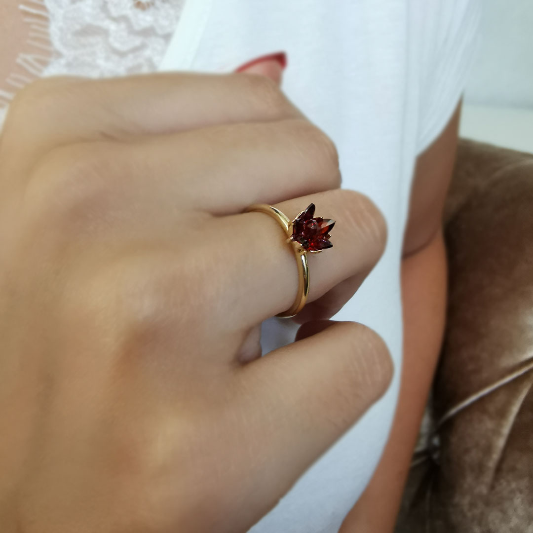 2 Gram Ağırlığında El İşçiliğiyle Takılan Garnet Markiz Taş Detaylı Minimal Tasarımıyla Oldukça Şık Ve Sade Bir Duruşa Sahip 14 Ayar Altın Lotus Çiçeği Yüzük. -Ruhsal uyanışın ve temizliğin sembolü olan, eşi benzeri doğada bulunmayan kırmızı renkli lotus çiçeği kalbi, tutkuyu yani kalbi temsil eder. Merhamet, şevkat gibi anlamları vardır. *Ürünlerimiz faturalıdır güvenle satın alabilirsiniz, özel hediye kutusunda ücretsiz kargo ile gönderilecektir.
