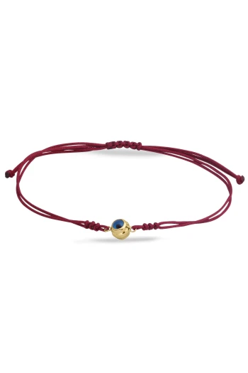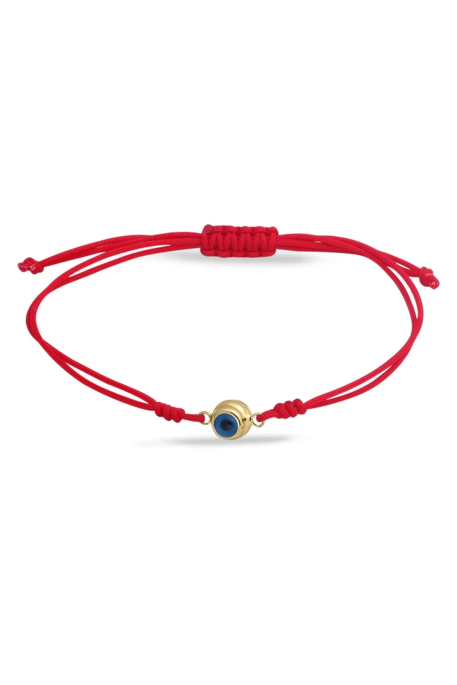 Kırmızı ipli tasarımı ile günlük olarak saatlerinizle yada tek olarak kullanabileceğiniz sevdiklerinize doğum günü hediyesi olarak da armağan edebileceğiniz 14 ayar 0.50 gr ağırlığında 14 ayar altın nazar bileklik.