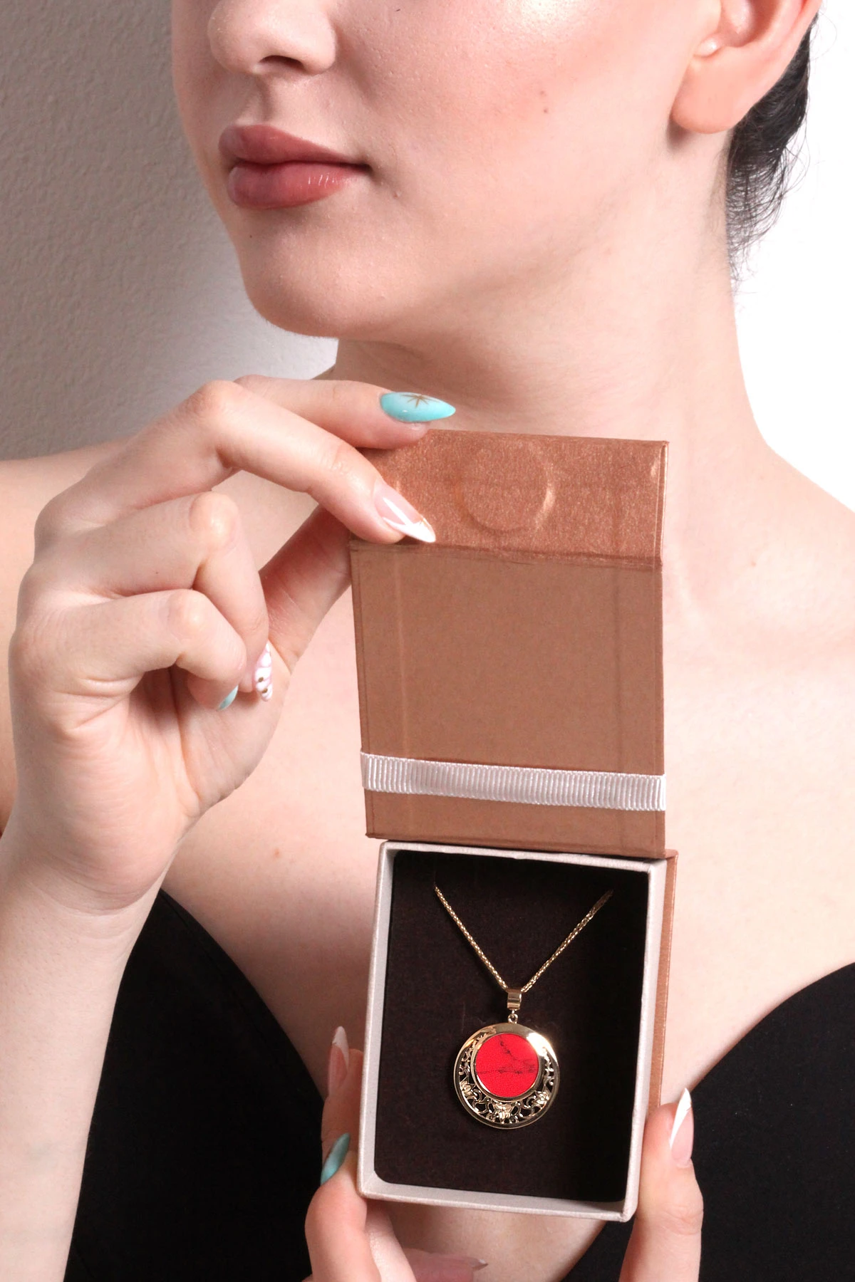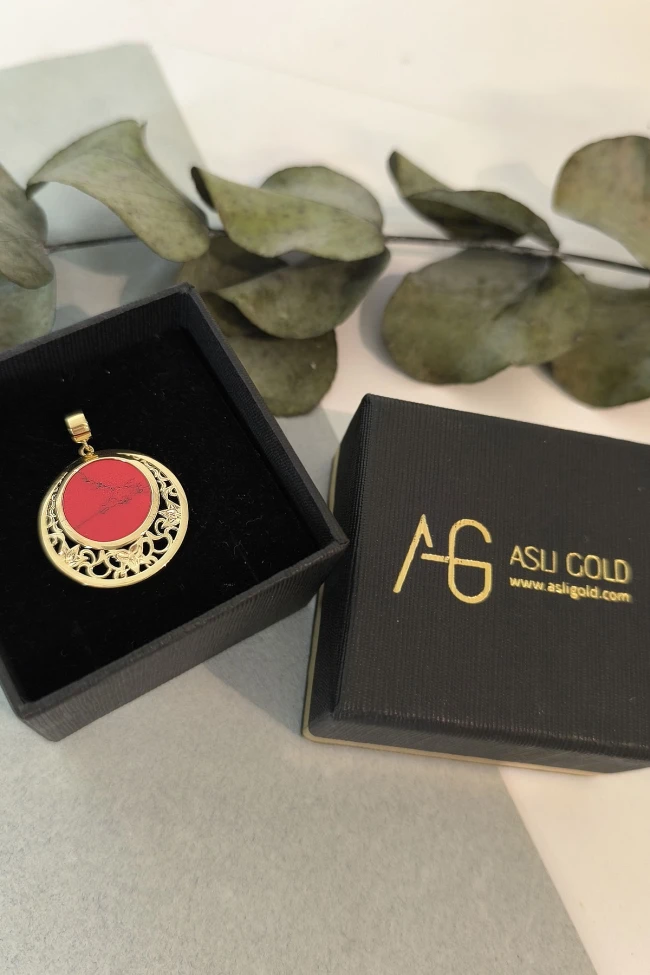 Antik Ve Modern Tarzı Beraberinde Taşıyan Oldukça Şık Bir Modele Sahip 6.50 Gr. Ağırlığında 14 Ayar Altın Kırmızı Mineli Kolye.