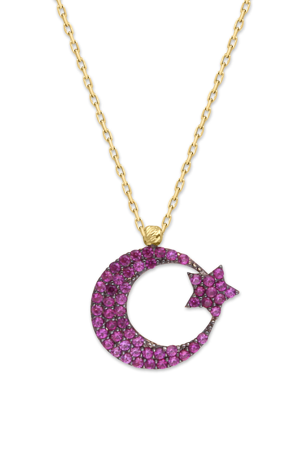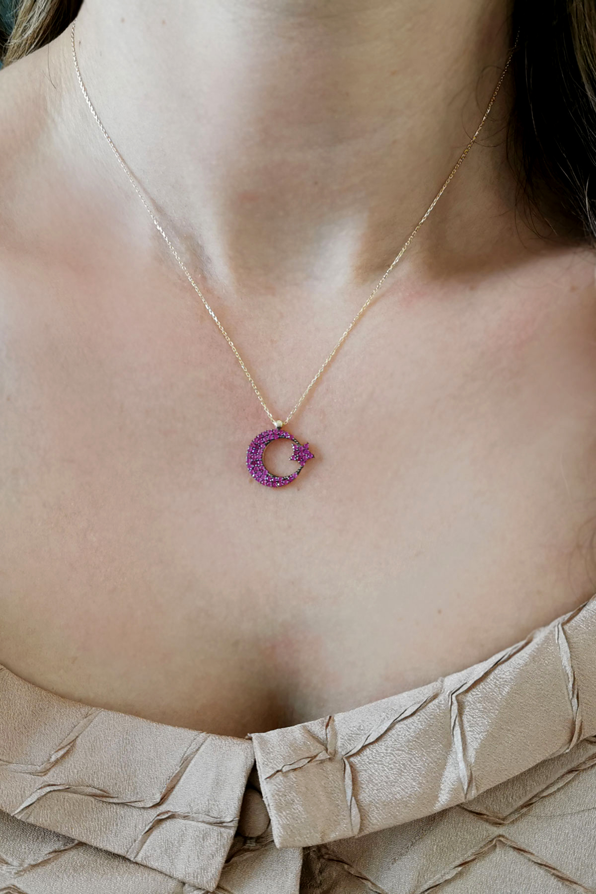 Kan Kırmızı Al Bayrağımızın Rengini Simgeleyen Zirkon Taşlı 1.7 Cm Boyunda Kendinden 45 Cm Zincirli 14 Ayar Işıl Işıl Günlük Kullanıma Uygun 2.20 Gr. Ağırlığında Altın Milli Gururumuz Ay Yıldız Kolye.