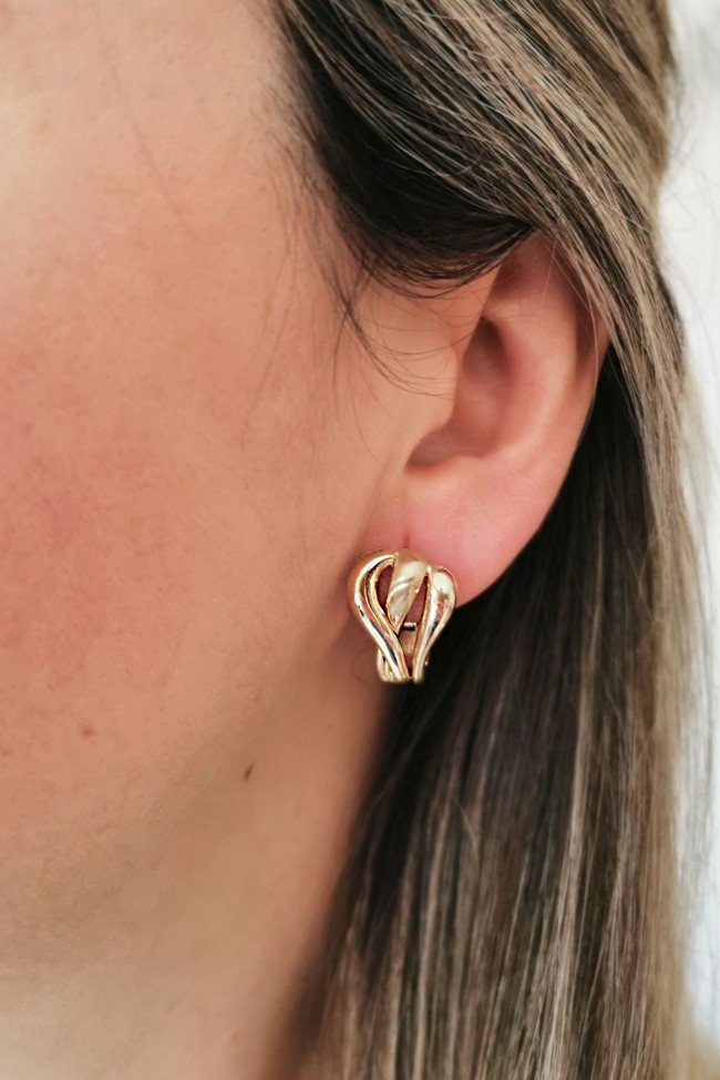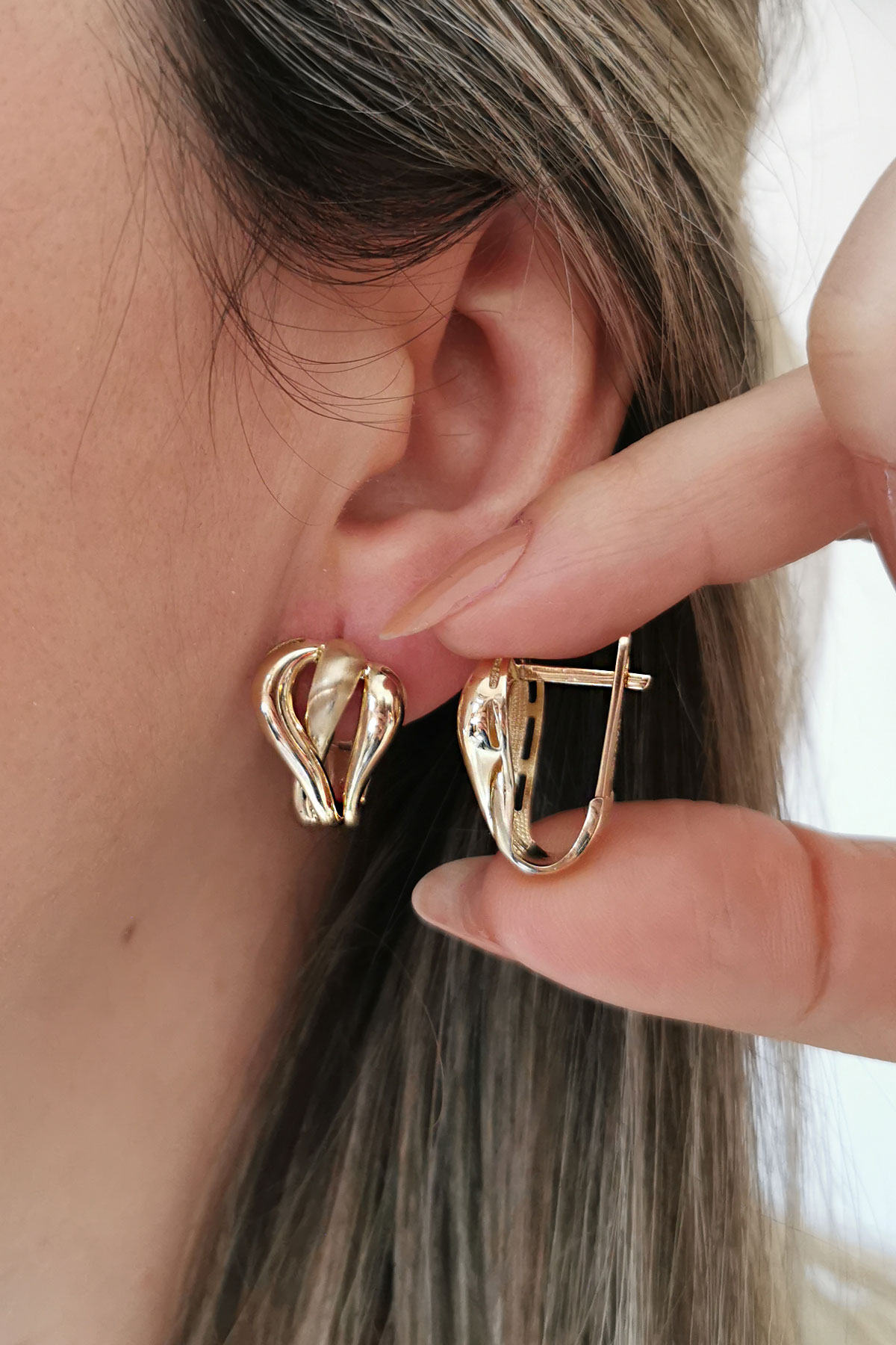 14 Ayar 2 cm modern, şık ve farklı tasarımı ile şahane modern bir duruşa da sahip günlük kullanıma uygun 7.10 gram ağırlığında kıvrımlı estetik model altın küpe.